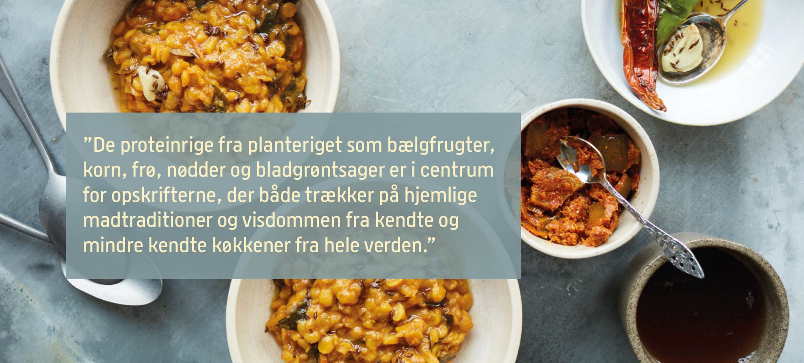 “ I fremtiden skal vi hente langt flere af vores proteiner fra planteriget, end vi gør i dag. Hvis vi skal lykkes med det, skal vi opnå større fortrolighed med råvarer, der i dag kun strejfer tallerkenen, men som kan danne grobund for en næsten endeløs række af velsmagende opskrifter