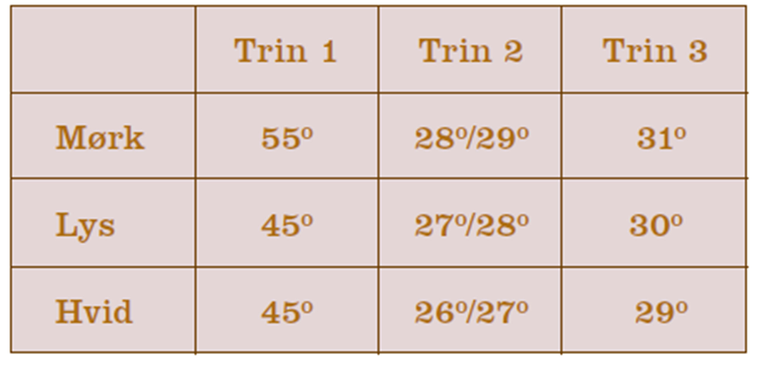 1. Smelt ca. 3/4 af chokoladen til den høje temperatur T1 (se i skemaet herunder). Smelt over vandbad og brug et digitalt termometer til at tjekke temperaturen i chokoladen med.