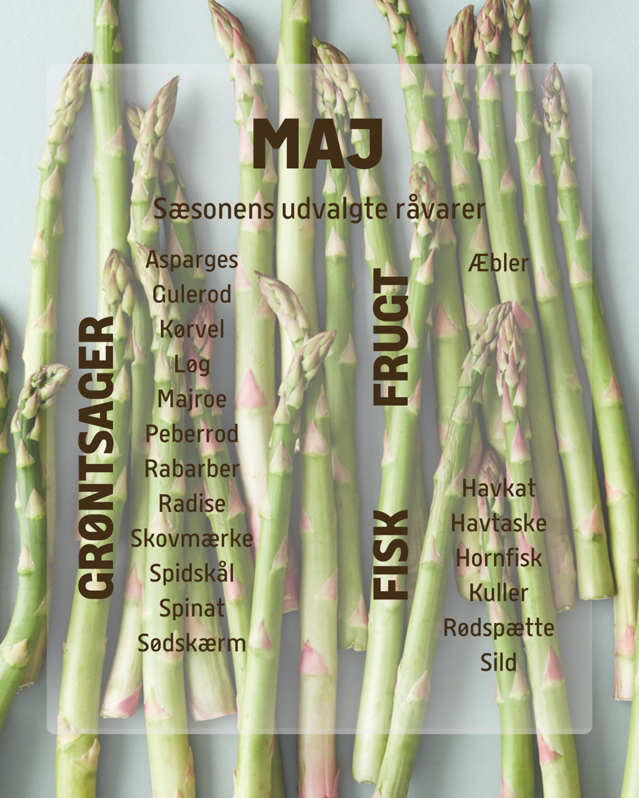 Asparges og radiser, spinat og spidskål vælter frem og er fulde af saft, kraft og smag. Spis til du revner af de danske frilandsgrøntsager! Husk i øvrigt også, at rødspætter og skrubber lander i fiskernes net nu.