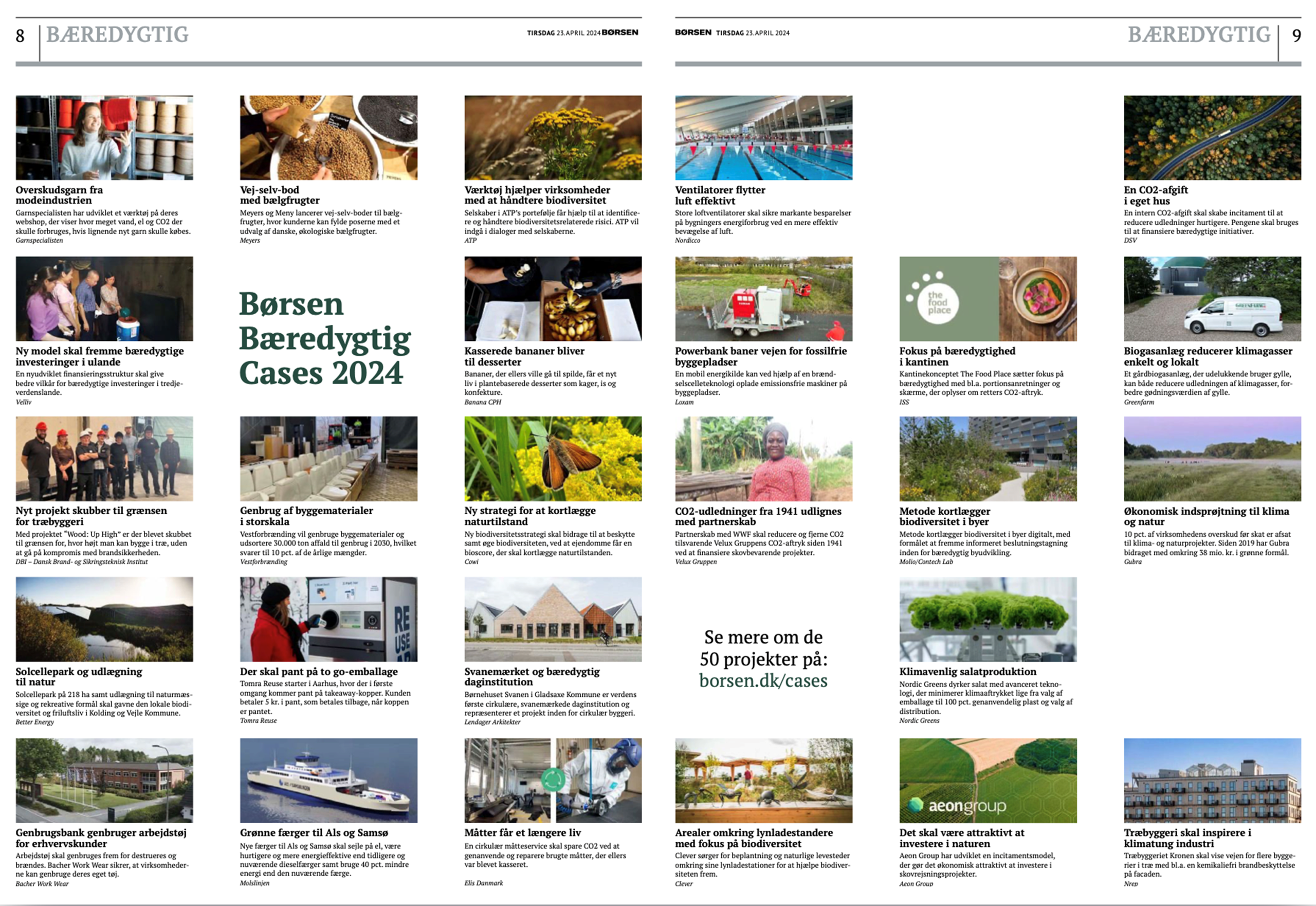 “Antallet og kvaliteten af indstillede projekter overgik igen i år vores forventninger, og det har været en stor opgave for redaktionen i samarbejde med vores advisory board at udvælge de projekter, der på bedste vis kan skaleres, er forretningskritiske, innovative og har en positiv effekt på omverdenen”, siger Katrine Grønvald Raun, redaktør for Børsen Bæredygtig.