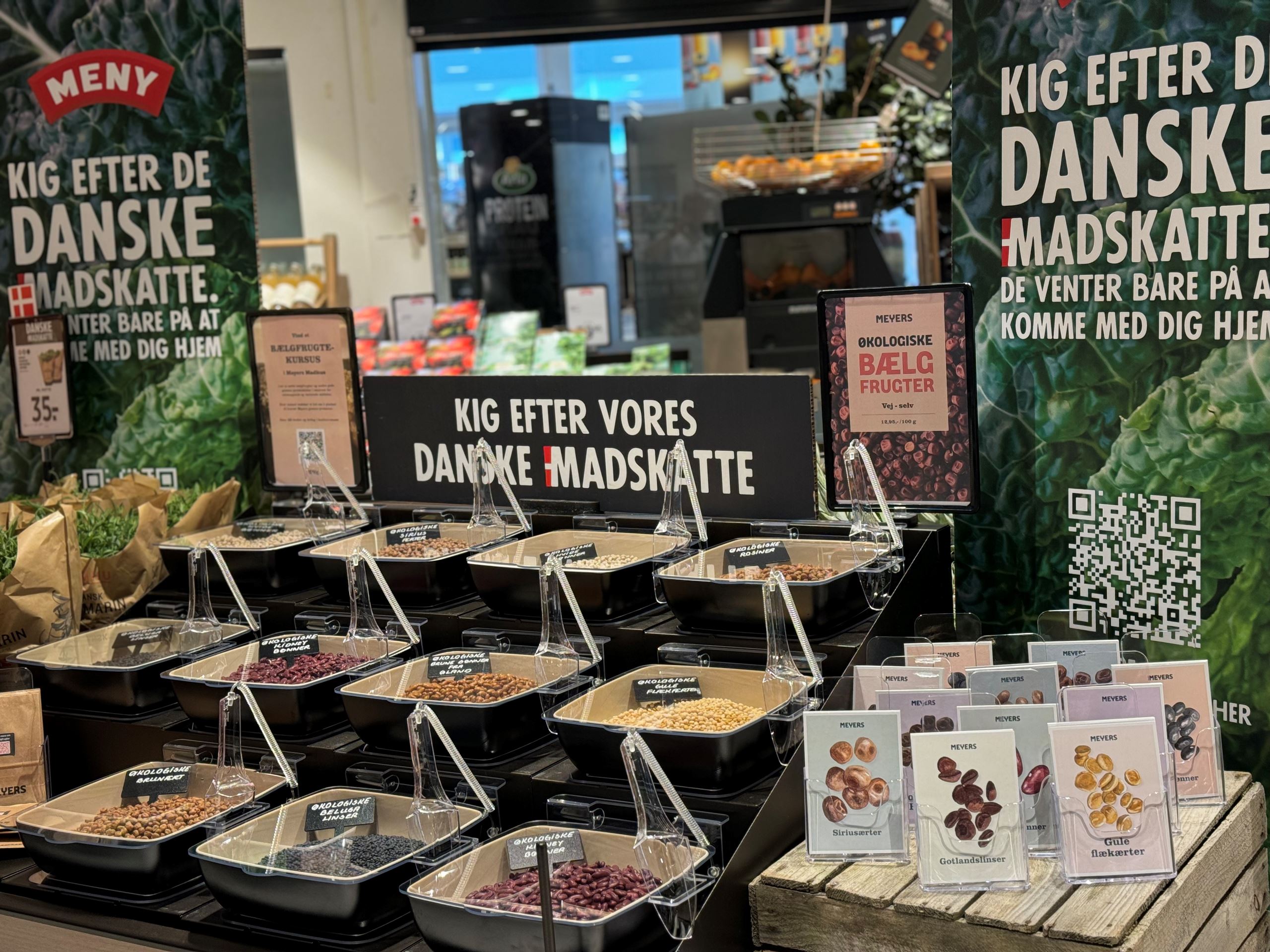 • MENY lancerede i februar 2024 kampagnen ”Danske madskatte”, der fremhæver produkter af særligt høj kvalitet med en lokal historie. De danske, økologiske bælgfrugter i boderne er del af kampagnen, som man kan læse mere om her.