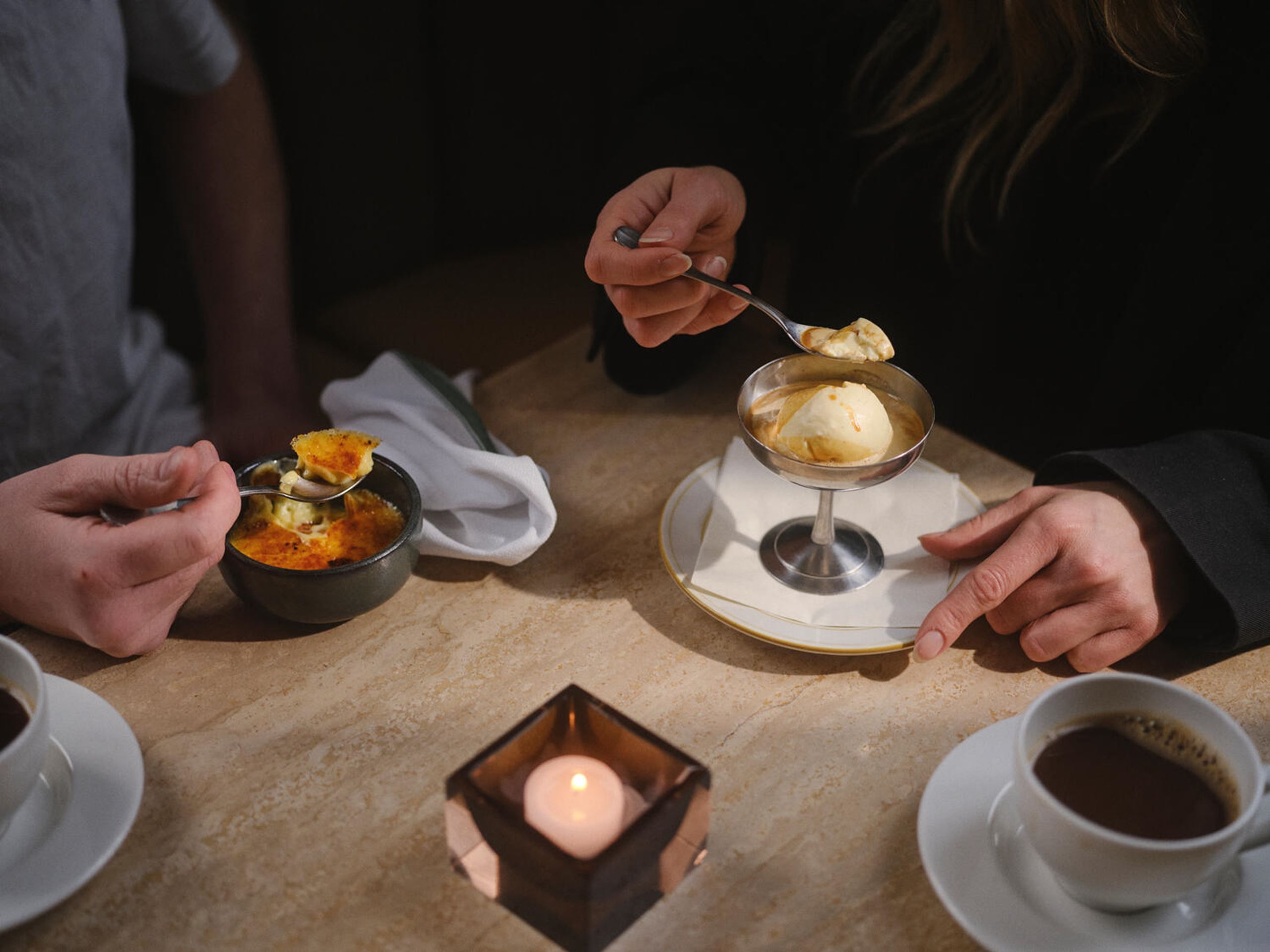 Til frokost byder den nye menu på smørrebrød som rødspætte og hønsesalat, mens aftenkortet har både velkendte serveringer som løgtærte og profiteroles og nye retter såsom et udvalg af burgere og salad lyonnaise med porcheret æg, bacon og sæsonens grønt: