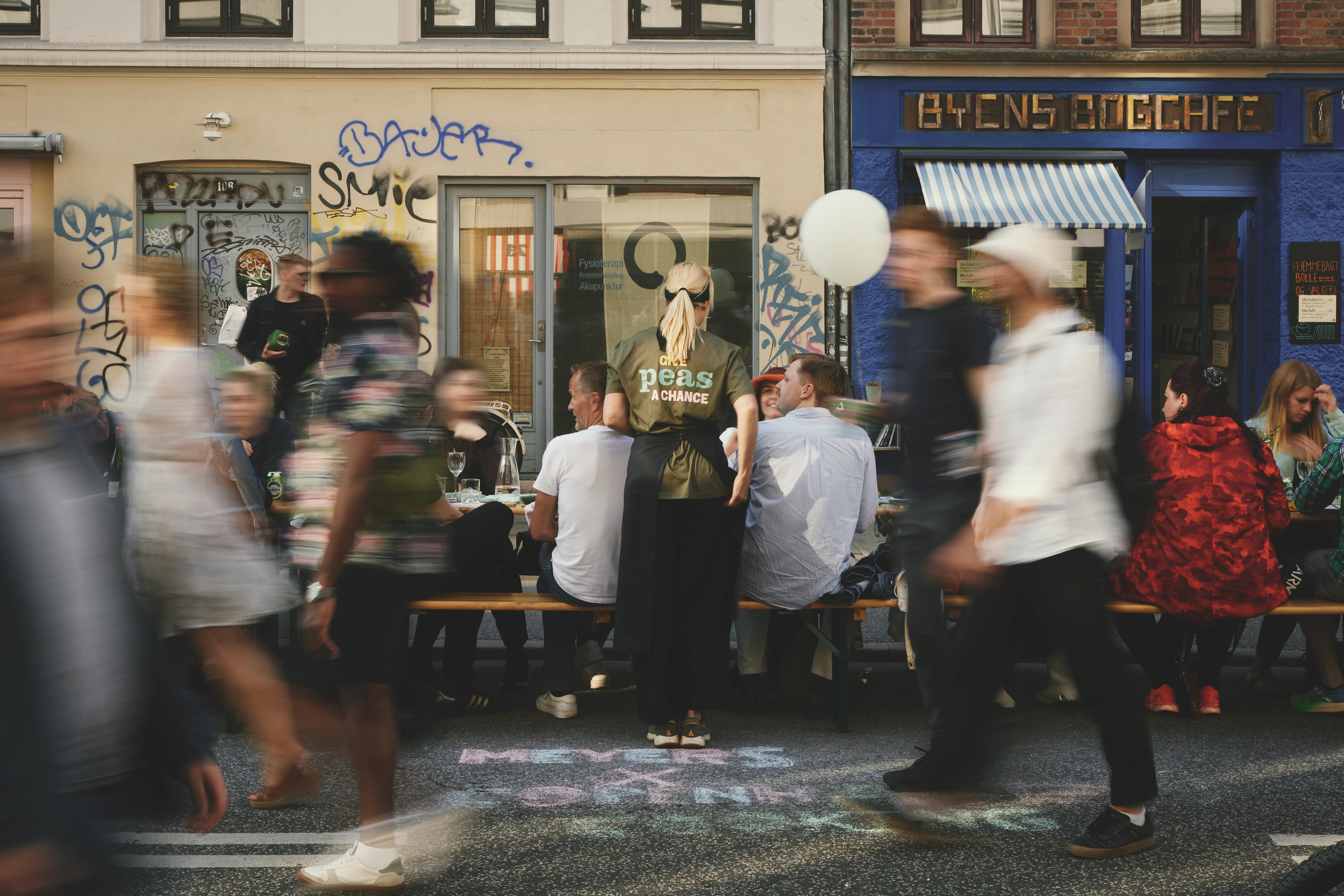 Afvikling side om side med gadefesten, hvor mad, stemning og byliv smeltede sammen.