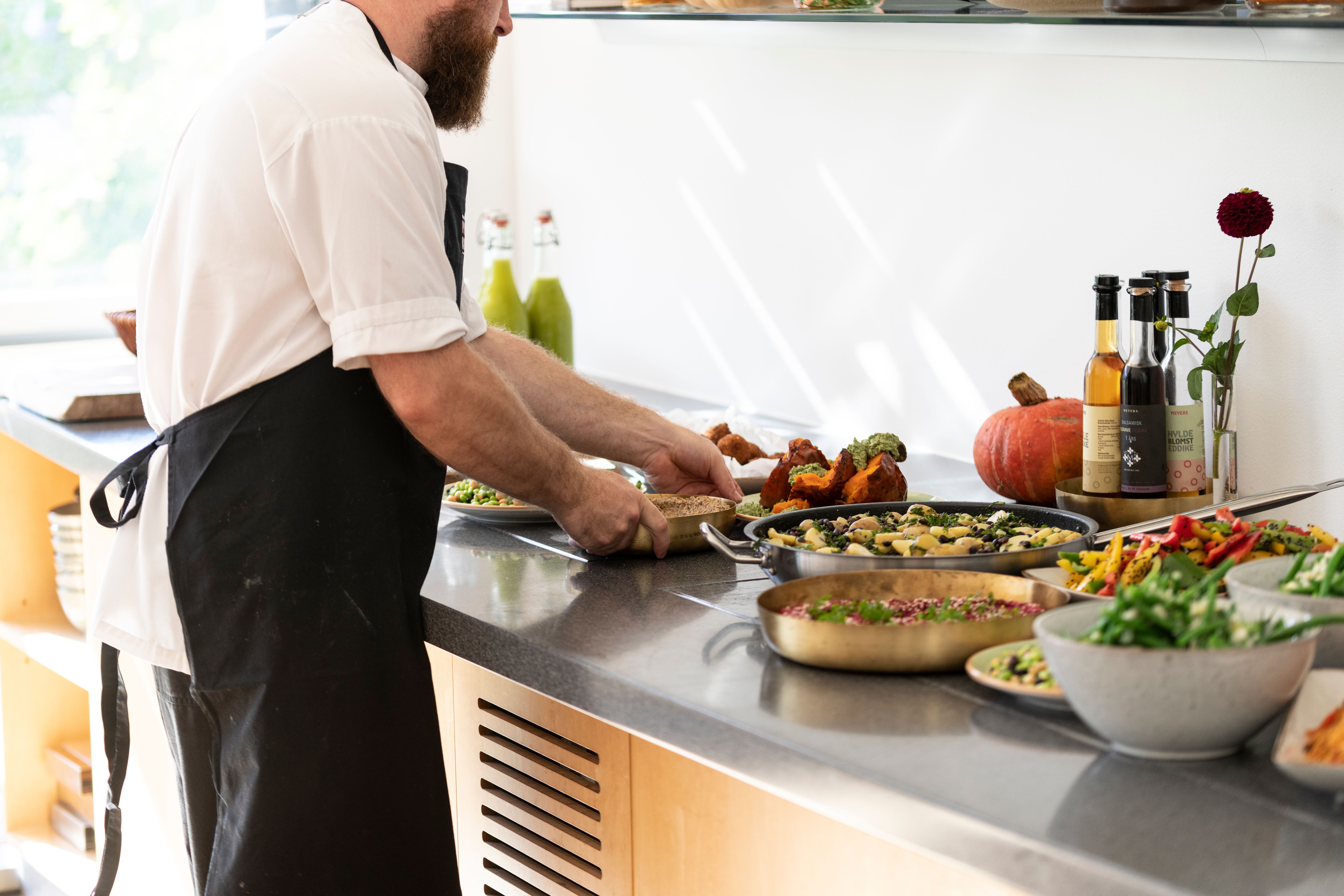 Morgenmad, frokost, mødeforplejning og takeaway leveres hver dag til huset.
