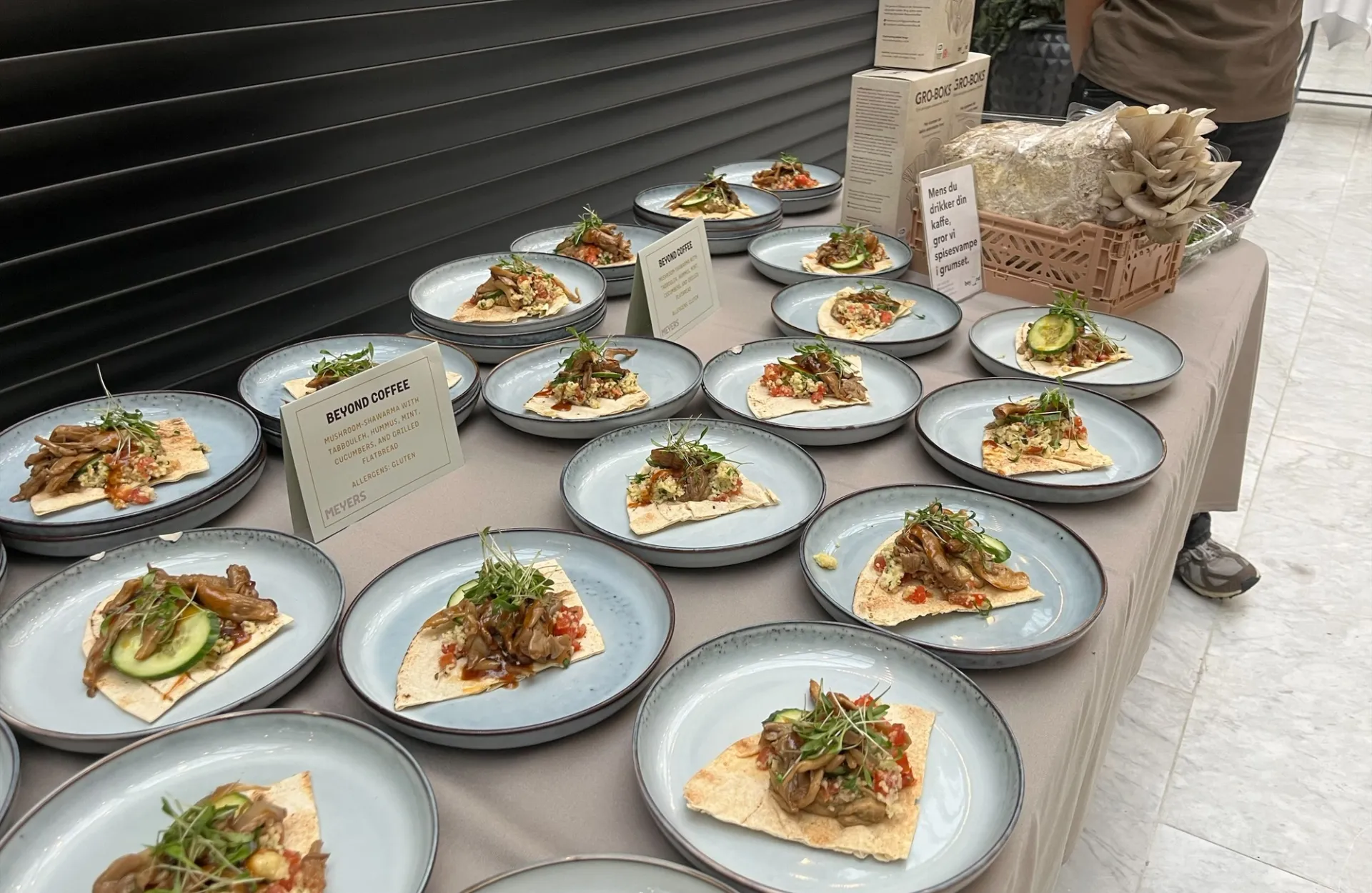 I forbindelse med Danmarks EU-formandskab inviterede Folketinget til en interparlamentarisk konference om plantebaserede fødevarer og biosolutions. Her bidrog Meyers med en frokost, der ikke bare skulle mætte – men også vække nysgerrighed, sætte perspektiv og åbne samtaler om fremtidens måltider. Vi serverede et 100 % plantebaseret måltid i seks smagsfulde kapitler – skabt med råvarer som tang, fermenterede bælgfrugter og svampe groet på kaffegrums. Ved hver serveringsstation stod vores kokke og værter klar til at formidle både smagen og fortællingerne bag. En stående frokost, hvor substans og velsmag gik hånd i hånd.