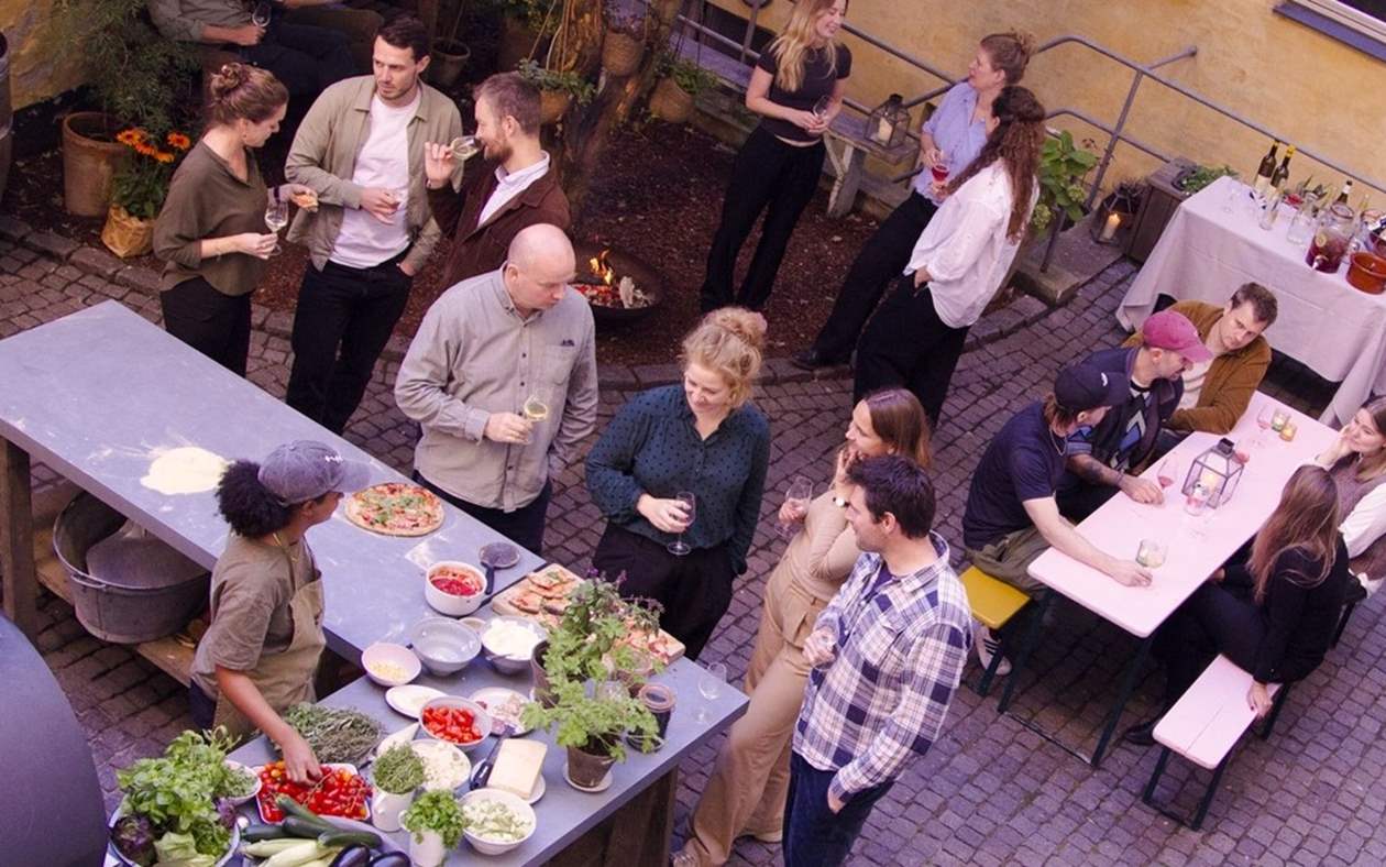 Kom ind i tredje baggård på Nørrebro og nyd sommerens summen under de kulørte lamper sammen med kollegerne. Vi har tændt op i bålfadene og har masser økologiske vin og øl på køl, og glæder os til at byde jer velkommen.