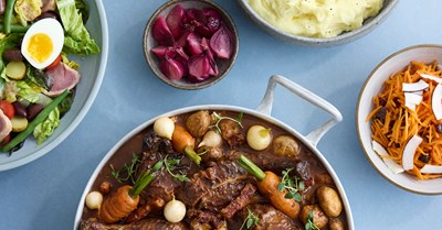 Den varme ret komplimenteres af spændende og fyldige salater og grønt tilbehør