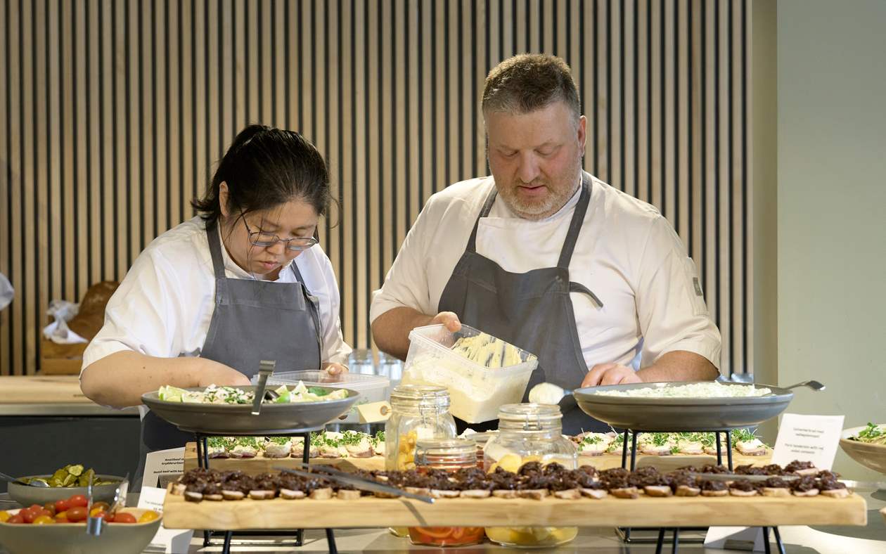 Vi er skabt ud af tankerne bag Det Nordiske Køkken, der først og fremmest søger at skabe velsmag via de råvarer, der er særligt gode på vores breddegrader. Vi har stærke ambitioner på madens vegne og har klare holdninger til økologi, dyrevelfærd og klimapåvirkning. Det er med dét afsæt, at vores dygtige kokketalenter er forkæmpere for en frokosttallerken, der ikke kun er velsmagende, men også sund for den enkelte og bæredygtig for verden.