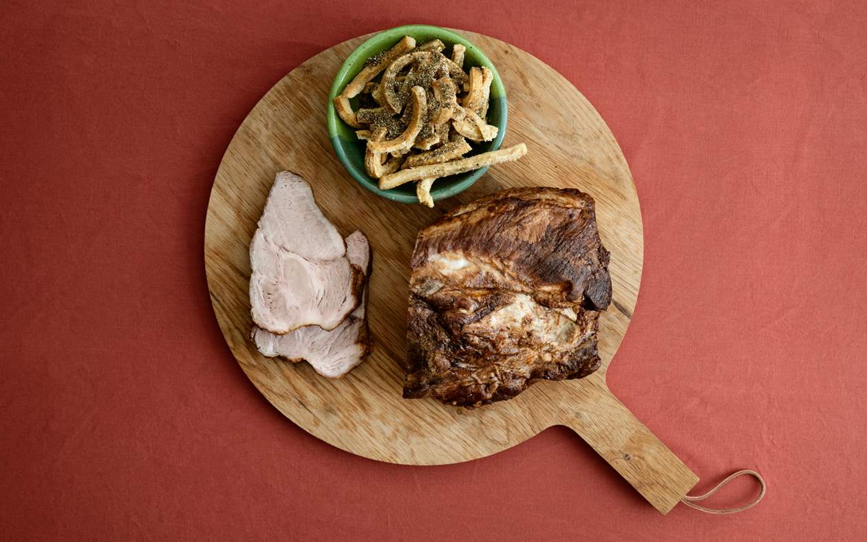 Vores egen terrin af pastinak med friterede jordskokker og hjemmelavet sød julesennep rørt med honning og varme krydderier |