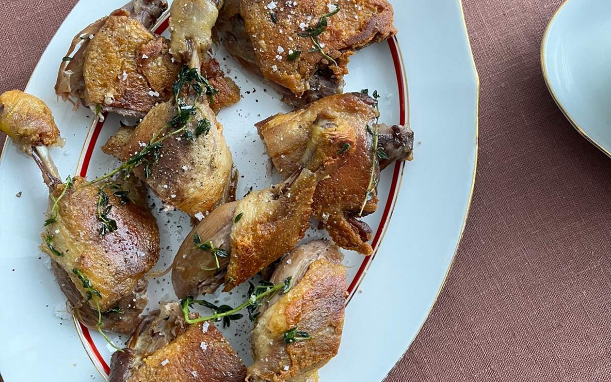 Kalveleverpostej med sprød bacon og ristede svampe |