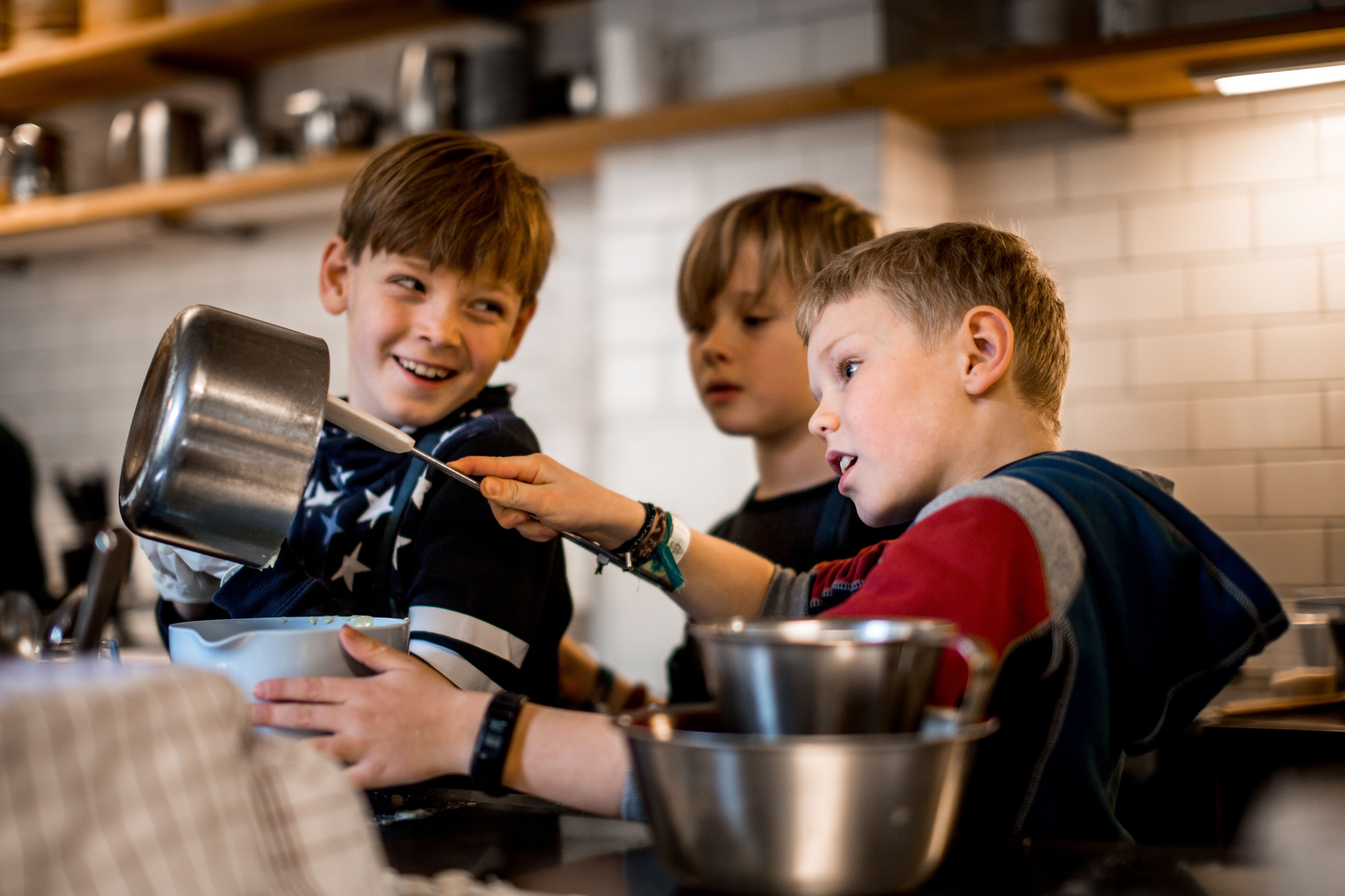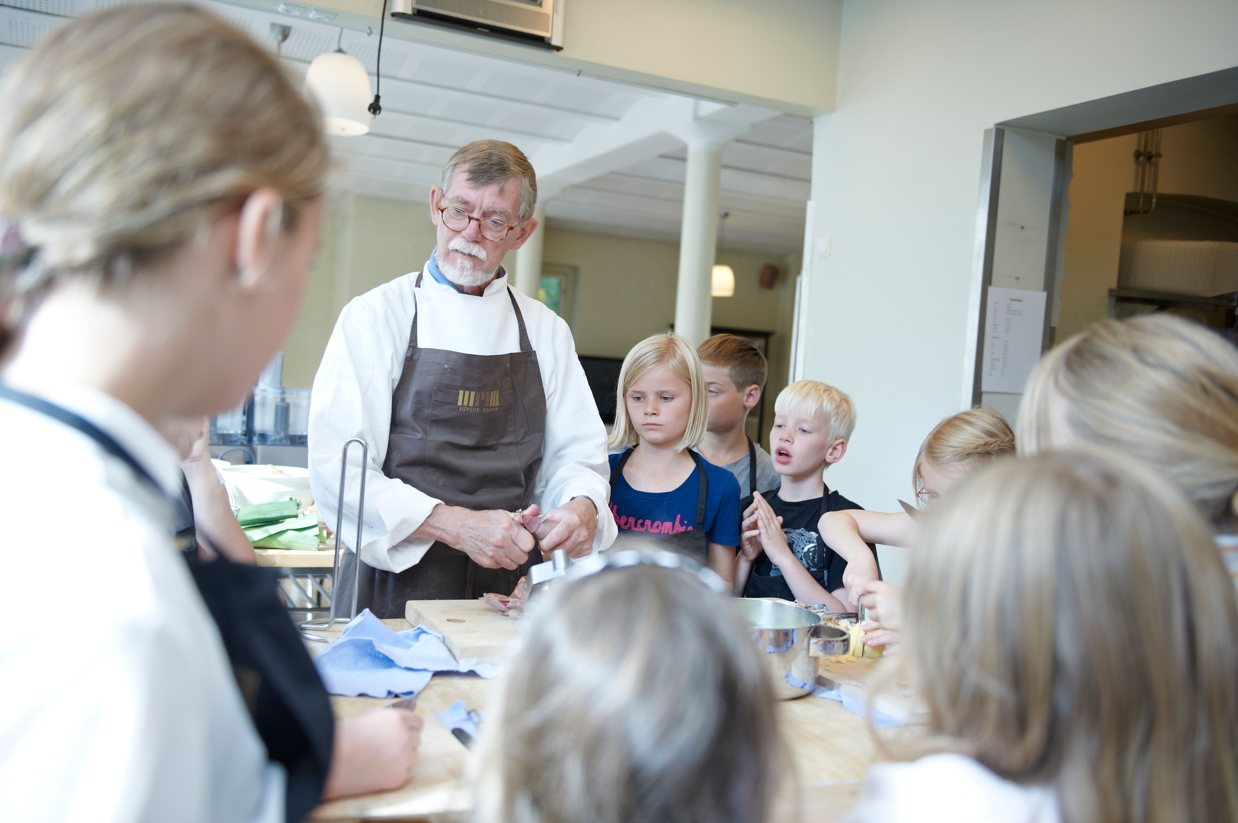 Børnene lærer basale køkkenteknikker, som at filetere, stege, dampe samt at lave saucer, salater, bagværk og meget andet, med hjælp fra vores passionerede kokke, der har erfaring i at undervise børn. Hver gang slutter vi med et fælles måltid, som børnene selv er værter for.