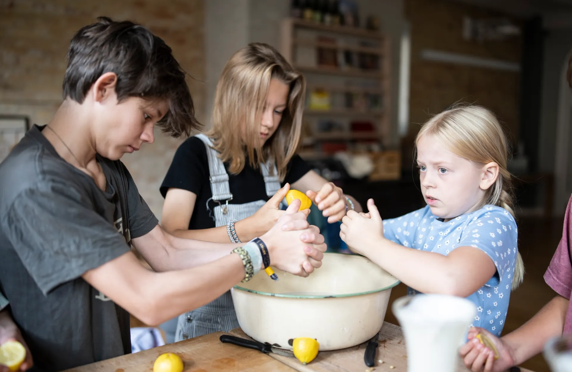 Børnene lærer basale køkkenteknikker, som at filetere, stege, dampe samt at lave saucer, salater, bagværk og meget andet, med hjælp fra vores passionerede kokke, der har erfaring i at undervise børn. Hver gang slutter vi med et fælles måltid, som børnene selv er værter for.