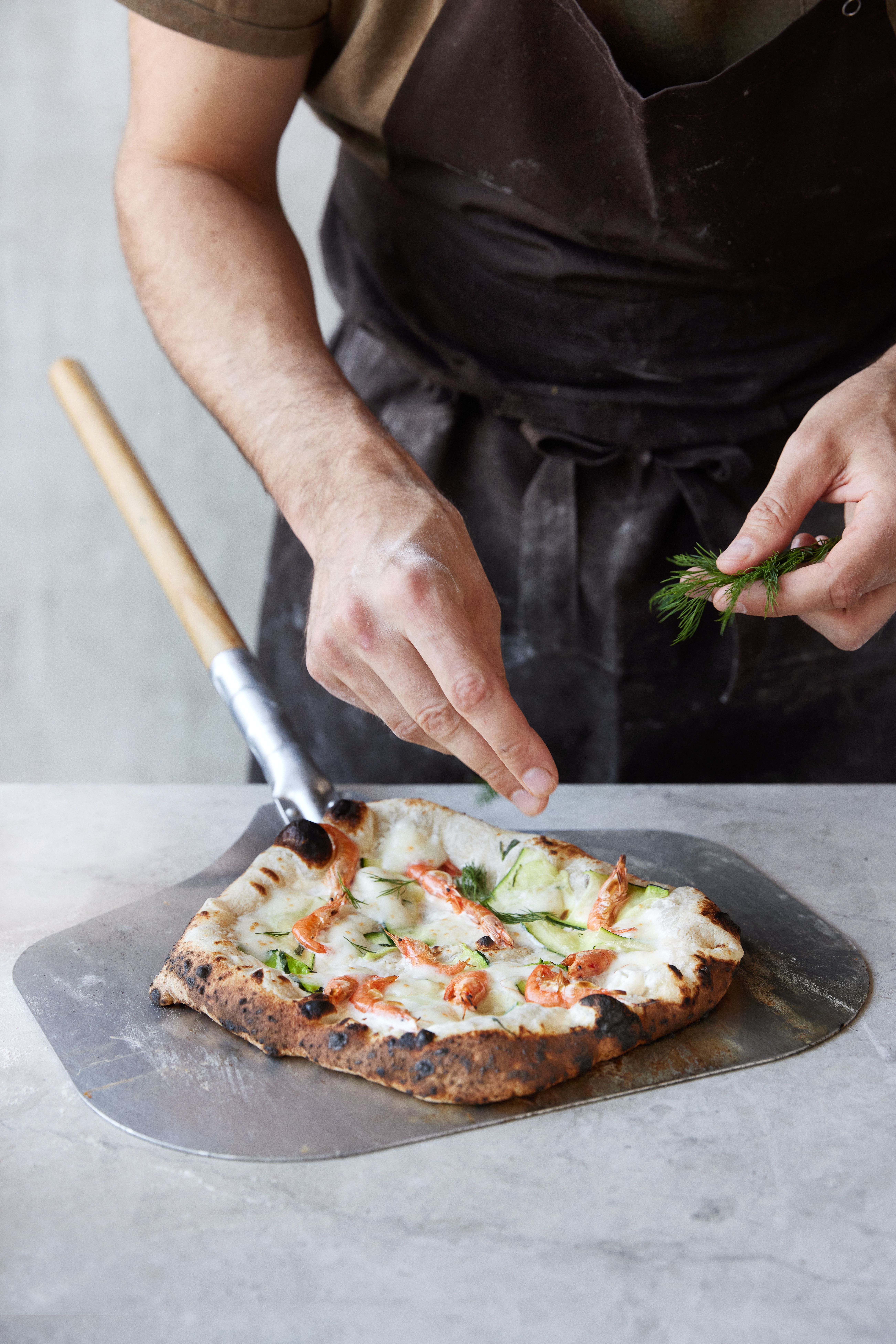 Selvom dejen er det teknisk mest krævende, får man ikke den perfekte pizza uden at være lige så omhyggelig med fyldet. Vi laver et udvalg af delikate pizzaer med fyld, der har rod i sæsonen – både hvide og røde pizzaer.