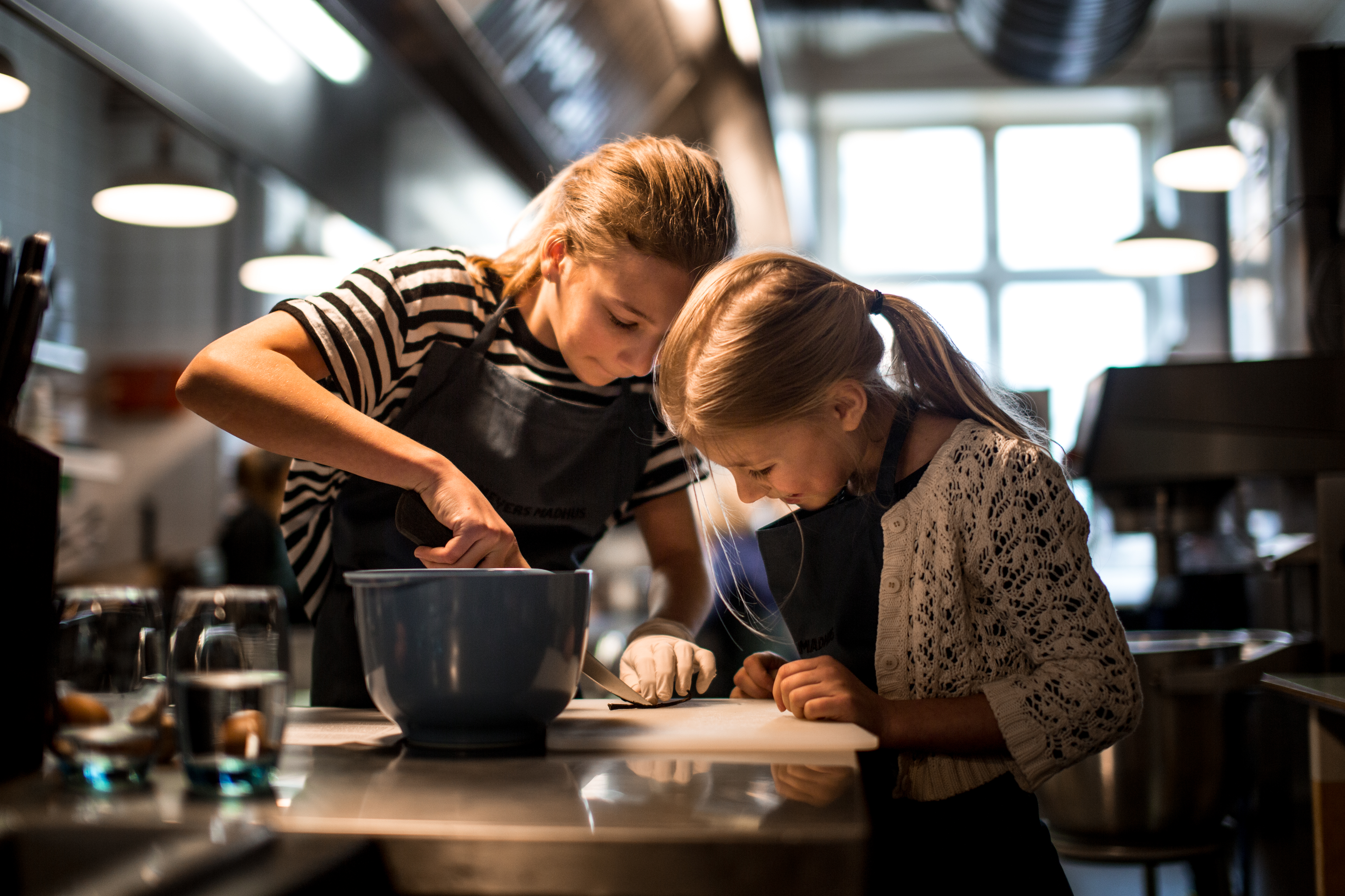 På vores to generationers kurser kan bedsteforældre/forældre/mostre eller onkler invitere deres børnebørn/børn/nevøer og niecer med i køkkenet, hvor I sammen får en hyggelig gastronomisk oplevelse.