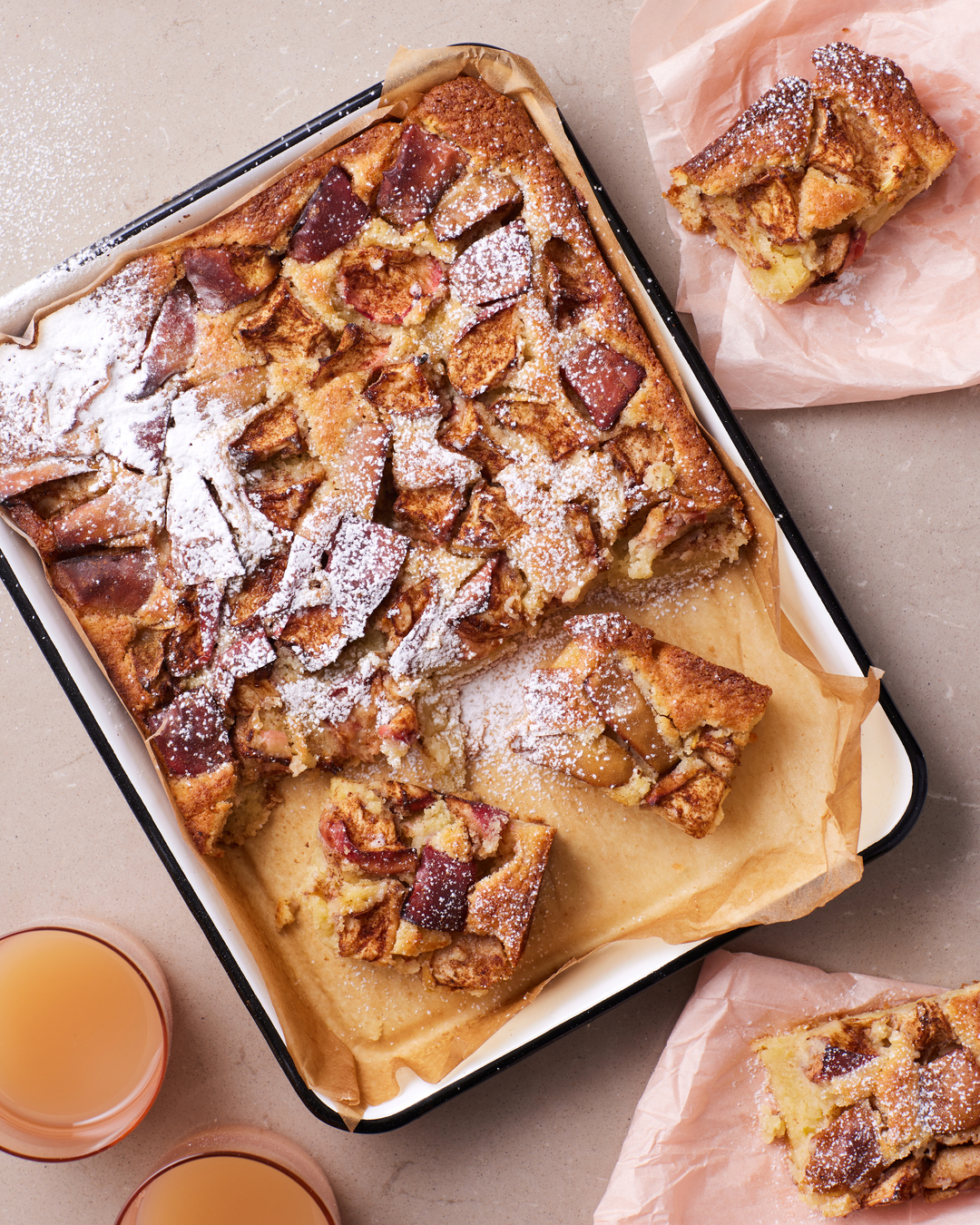 Denne æblekage er lavet på få ingredienser, og kan også bages med pærer, rabarber eller ferskener. Pynt kagen med lidt flormelis, for et ekstra flot udtryk.