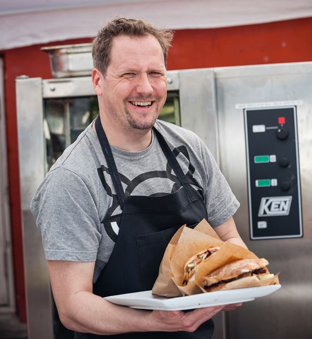Lille Meyer står klar med smagfulde retter, blandt andet vores klassiske flæskestegssandwich. Vi ses til god mad og festlig stemning.