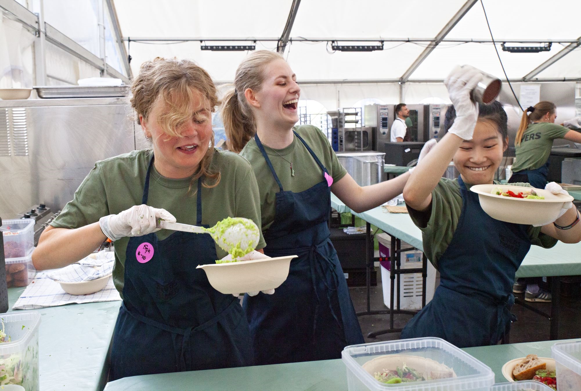 Lille Meyer åbner lugen i Volunteers Village og sørger for flæskestegssandwich, fyldig tomatsuppe med kimchitoast og morgenmad til alle de frivillige.