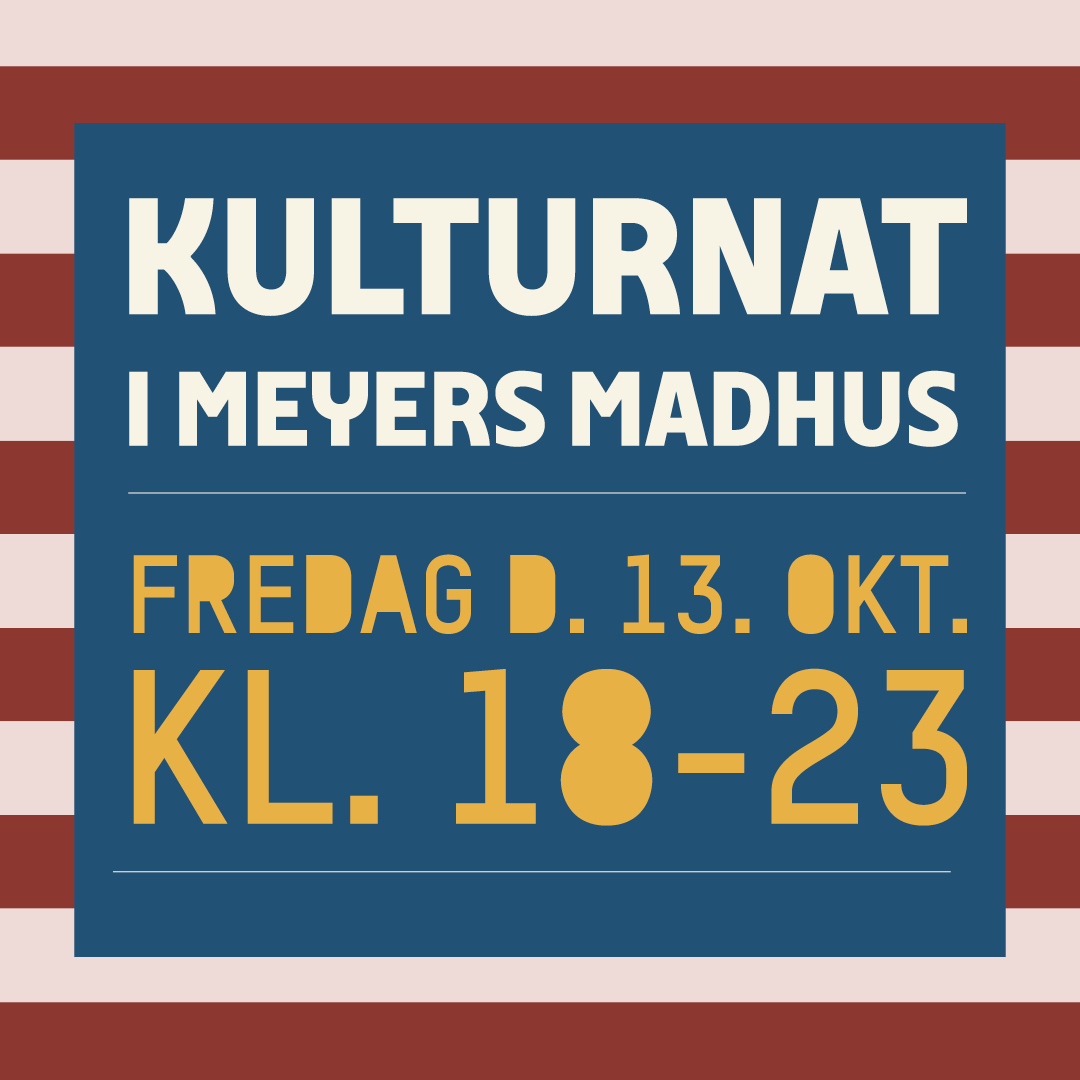 Sæt kryds i kalenderen 13. oktober, og mød os til kulturnatten i Meyers Madhus.