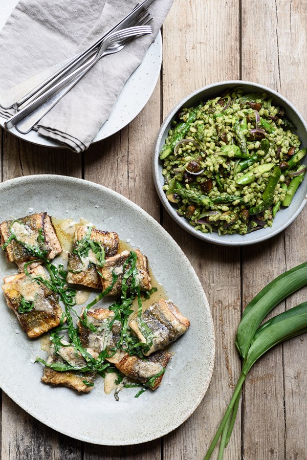 Mens hvide asparges vokser under jorden, er grønne asparges de skud af aspargesplanten, der vokser over jorden. De grønne asparges har en kort sæson og skal nydes som den fornemme forårsspise, det er, mens de er her – hvilket vil sige i maj og nogle gange ind i juni. Modsat sine hvide slægtninge skal grønne asparges ikke skrælles, men bare knækkes fri for den nederste træede del, og derefter skal de have en ganske kort tilberedning.