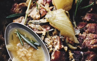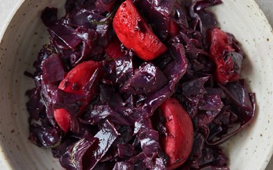 Braiseret selleri med rødkål, kartofler og svampesauce