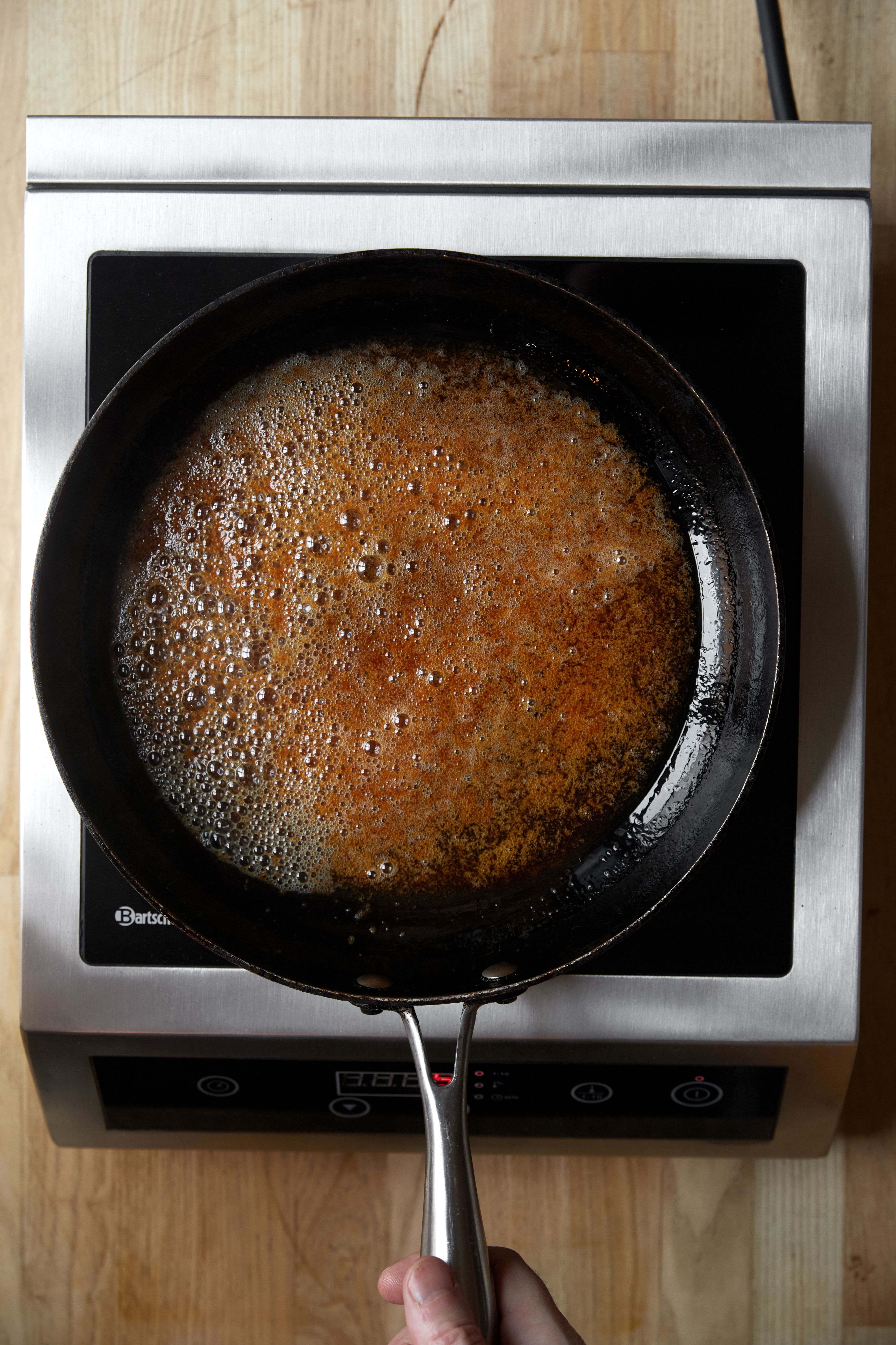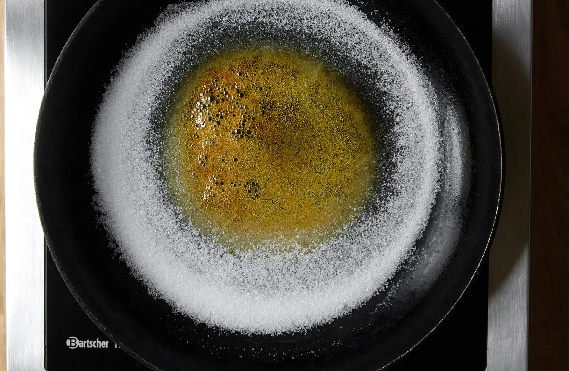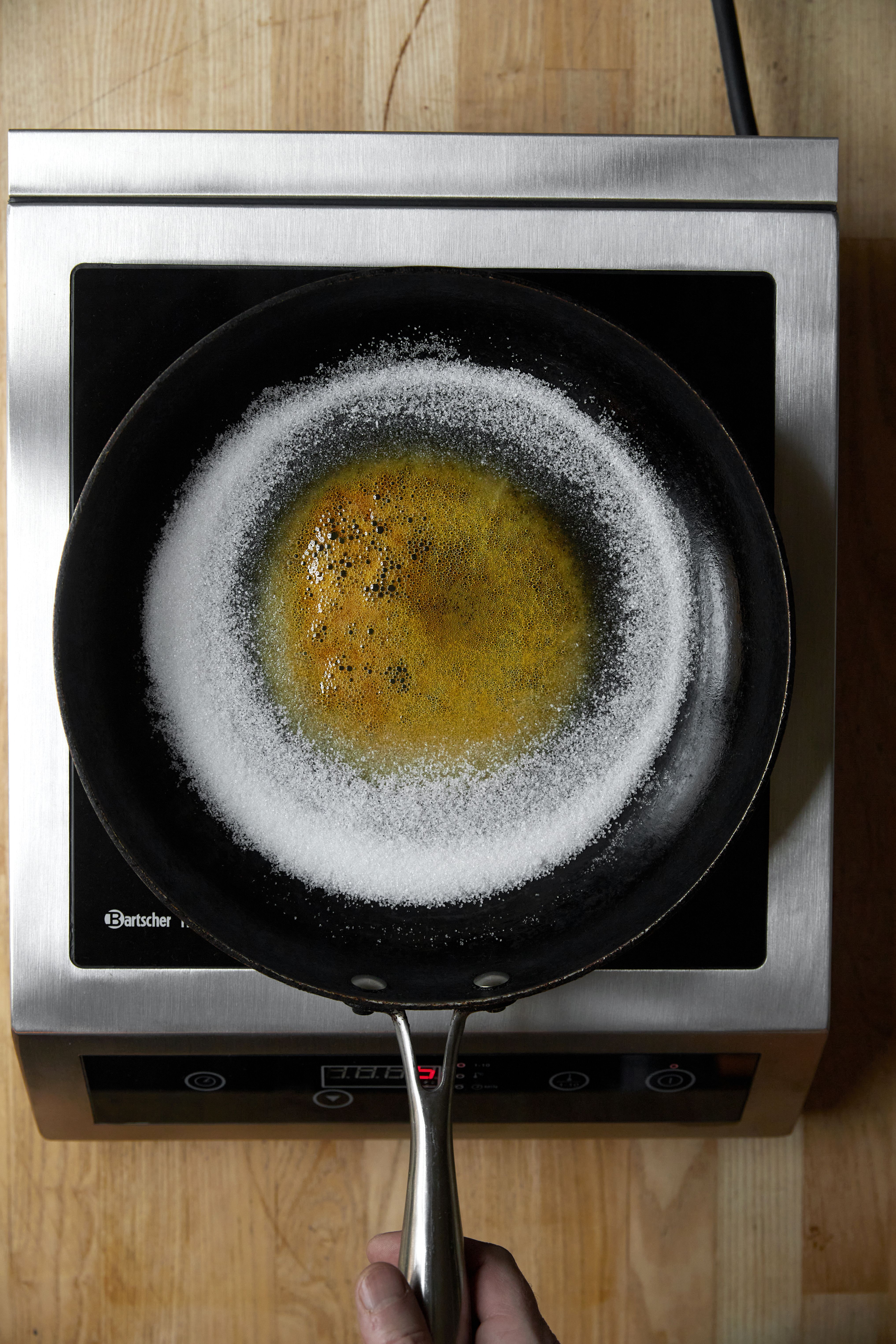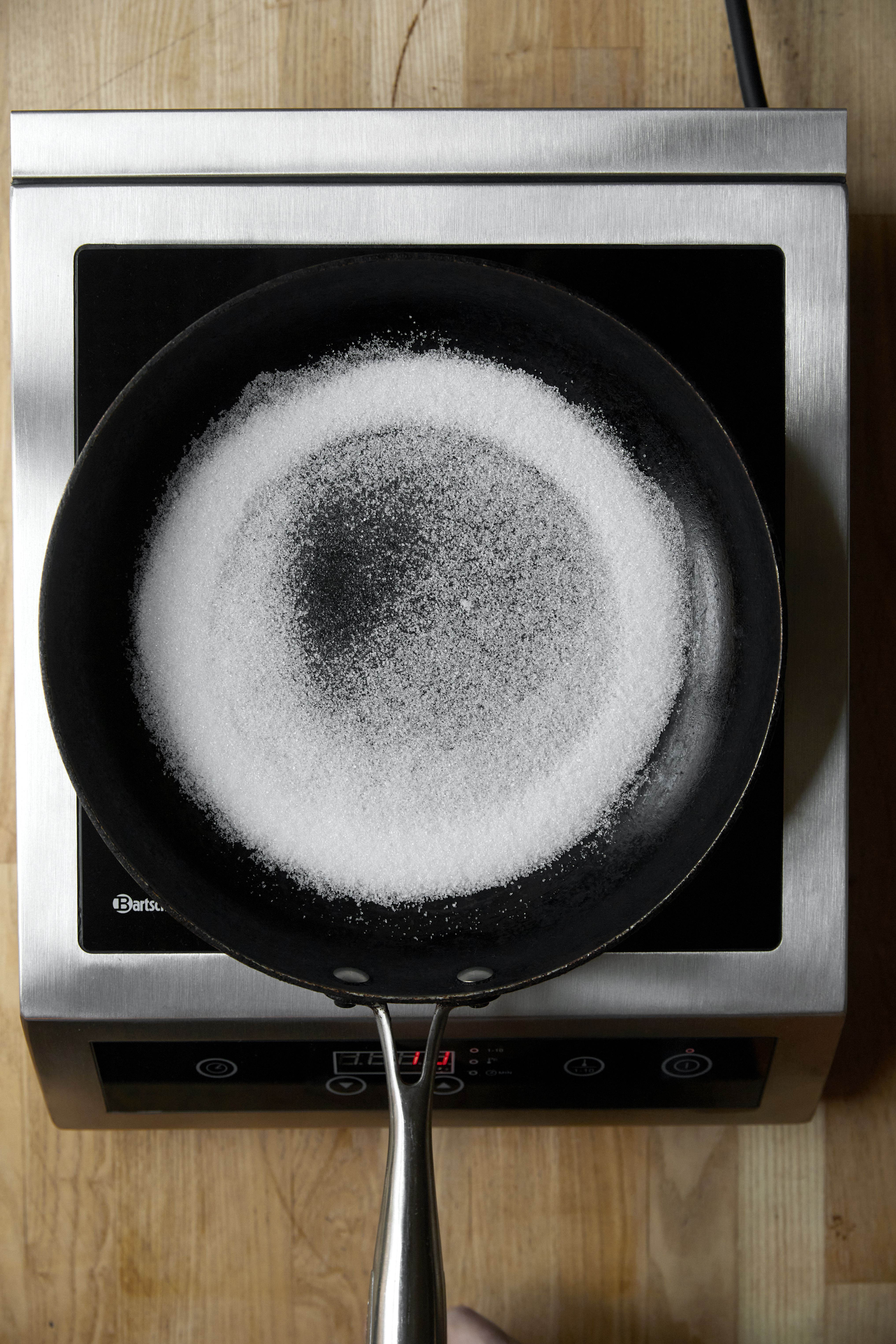 Smelt sukkeret på en pande ved jævn varme – uden at røre i det.
