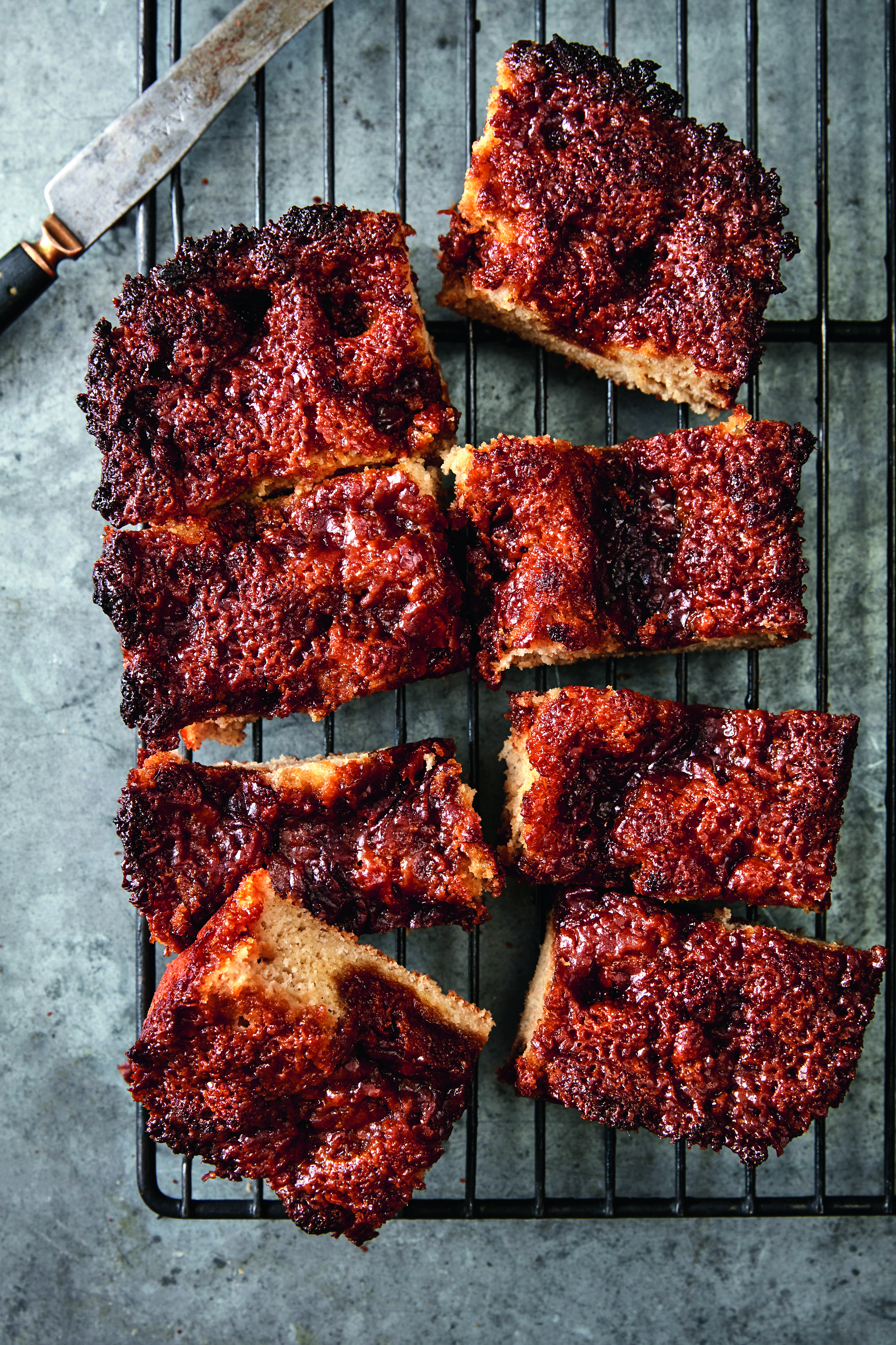 Smør remoncen ud over hele dejen med en smal paletkniv, og drys til sidst lidt brun farin oven på remoncen.