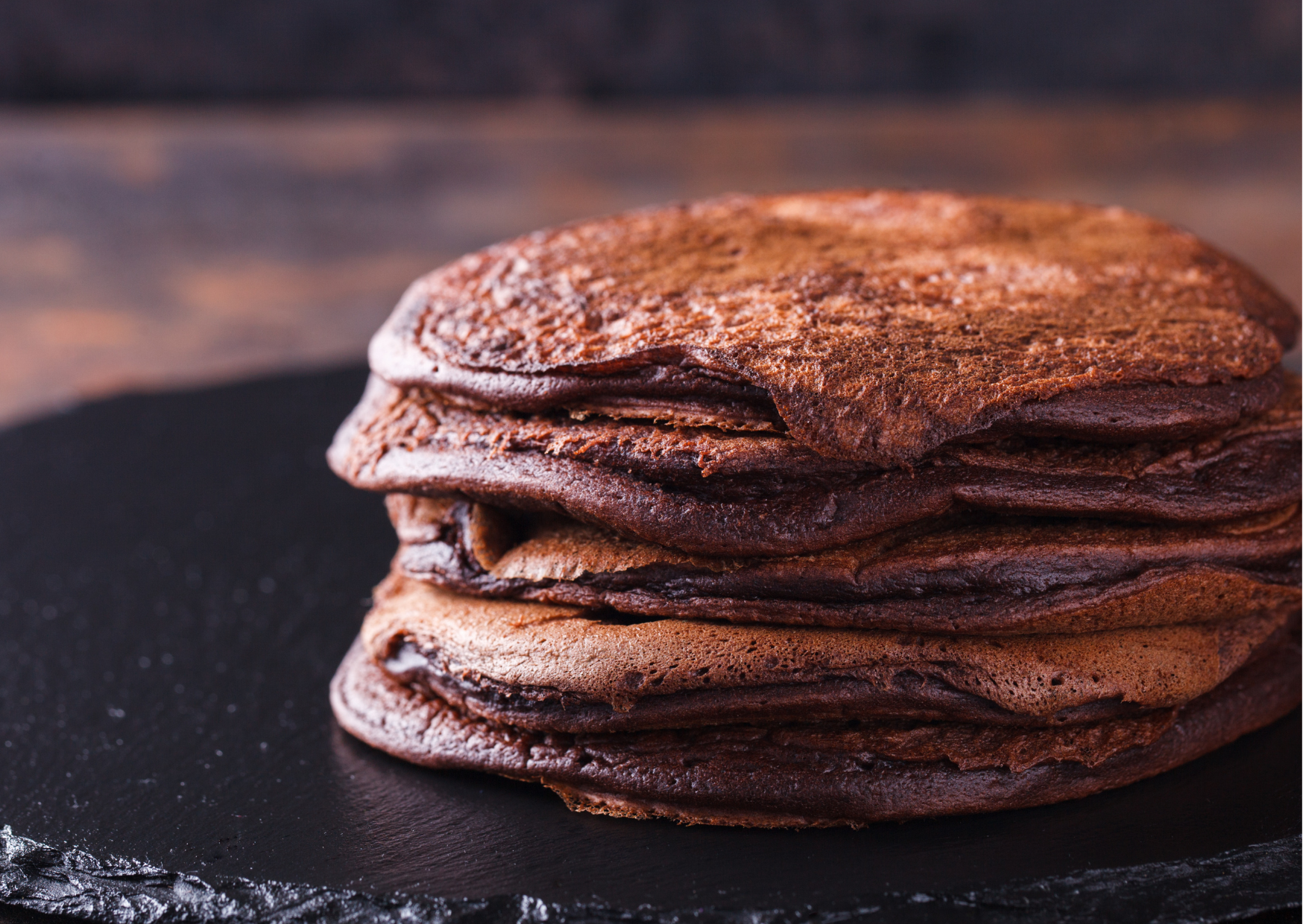 Bland hvedemel, kakao, sukker, salt, kardemomme og æg i en skål, og pisk det godt sammen med et piskeris. Tilsæt sødmælk og smeltet smør, og lad dejen hvile i 20 min. i køleskabet. Bag pandekagerne på begge sider på en varm slip-let-pande, læg dem på en tallerken, efterhånden som de bliver færdige, og hold dem lune under et stykke alufolie. Lav nu chokoladesovsen.