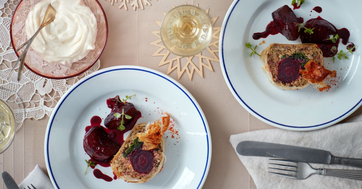 Rør tahin, dijonsennep, limesaft, honning, spidskommen, finthakket hvidløg og olivenolie sammen til en dressing. Smag til med salt og peber.