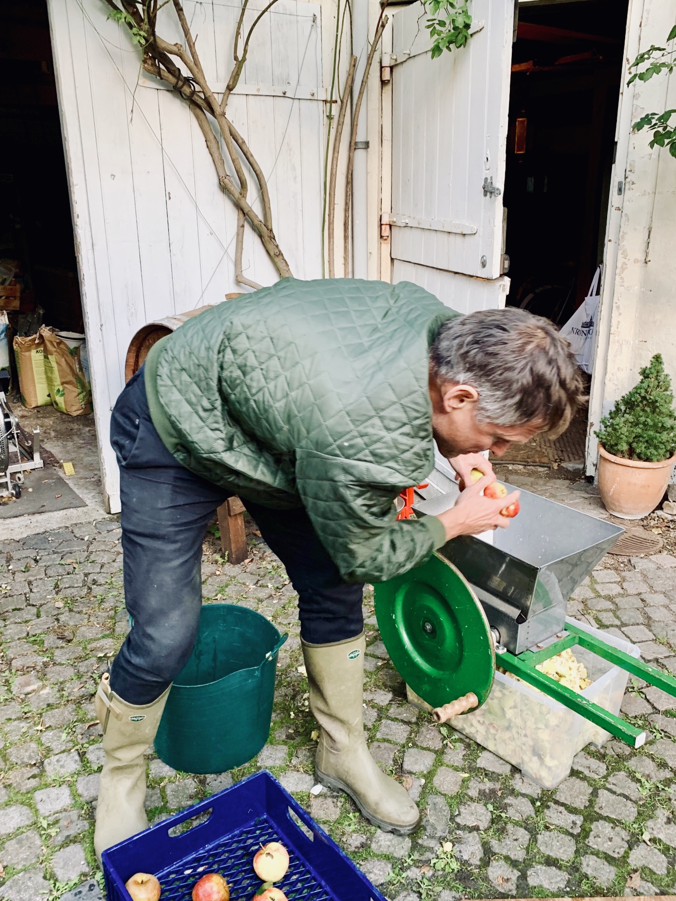 2) Wash the apples and check for rotten ones. Grind the apples and use a fruit press or a juicer to extract the apple juice.