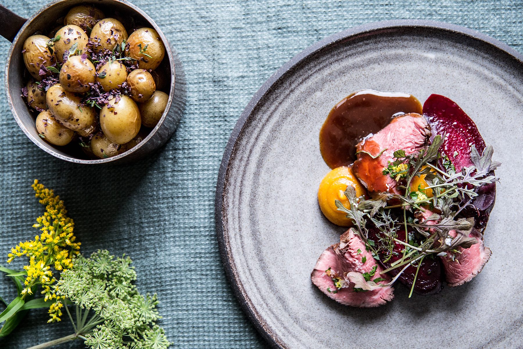 Sæt gryden i ovnen ved 150°, og lad kødet braisere i 1½-2 timer, indtil det er helt mørt. Det er vigtigt at vende rundt i gryden et par gange under tilberedningen.
