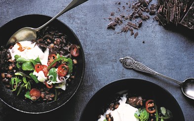 Chili con carne med merquezpølser, sorte bønner og ras el hanout