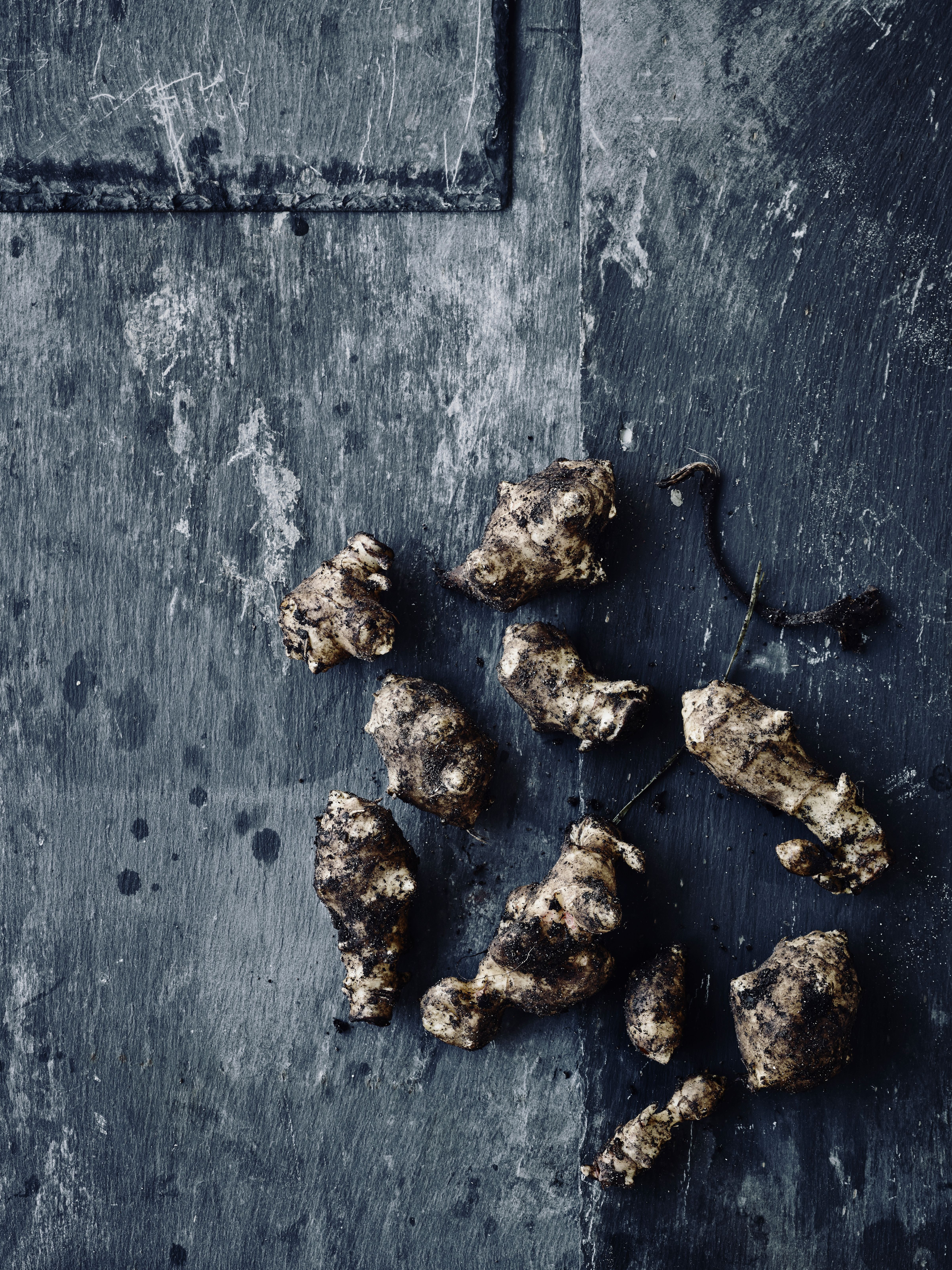 Server dyreboven sammen med jordskok-æblepuré, bagte løg, den gode braiseresky og drys med masser af friskhakket persille.