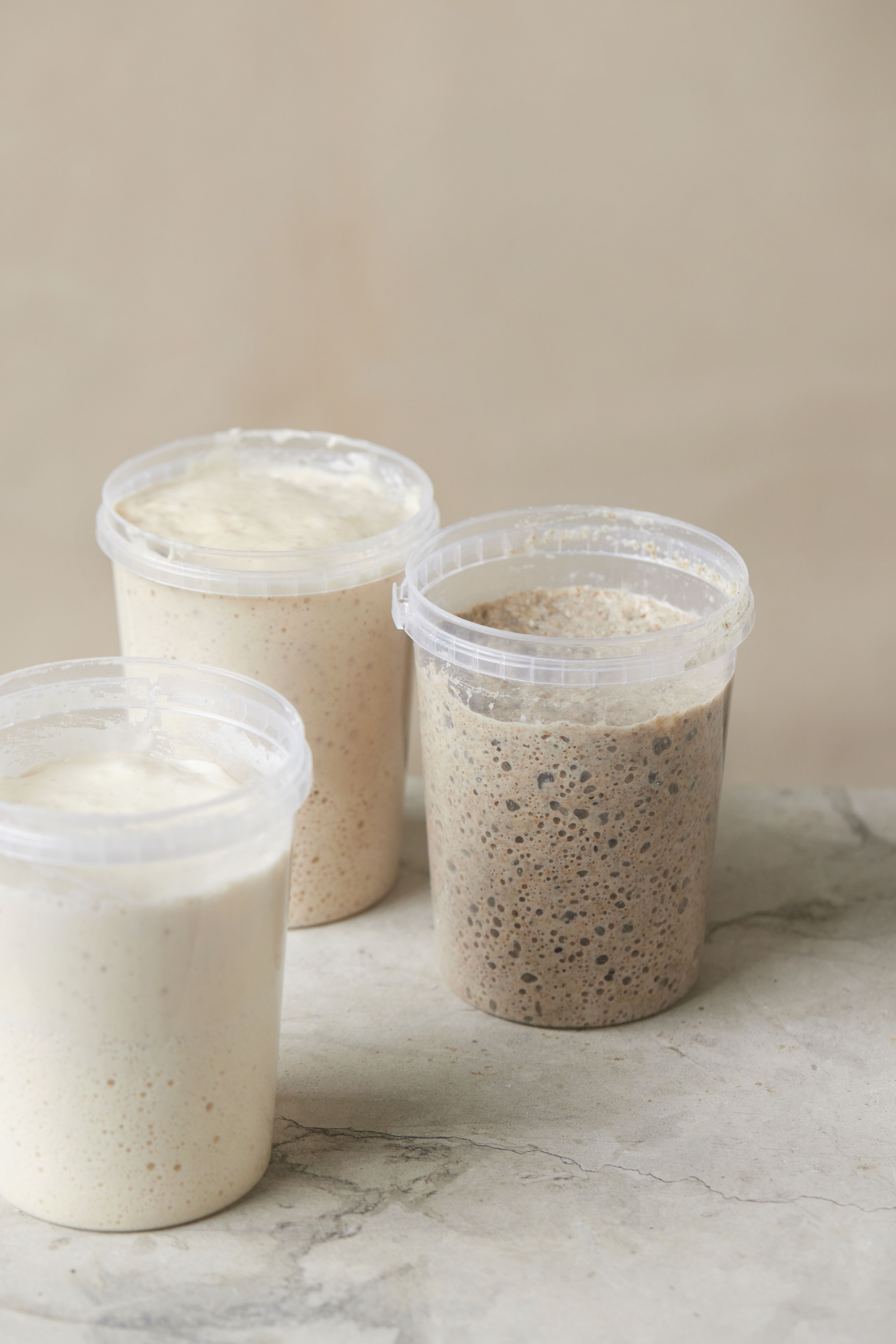 Det kan være en god ide at tjekke dejen et par timer inden, du har tænkt dig at bage brødet. Hvis dejen ikke har hævet nok i køleskabet, bliver du nemlig nødt til at lade den hæve et par timer ved stuetemperatur, så gærcellerne lige "vågner" i varmen.