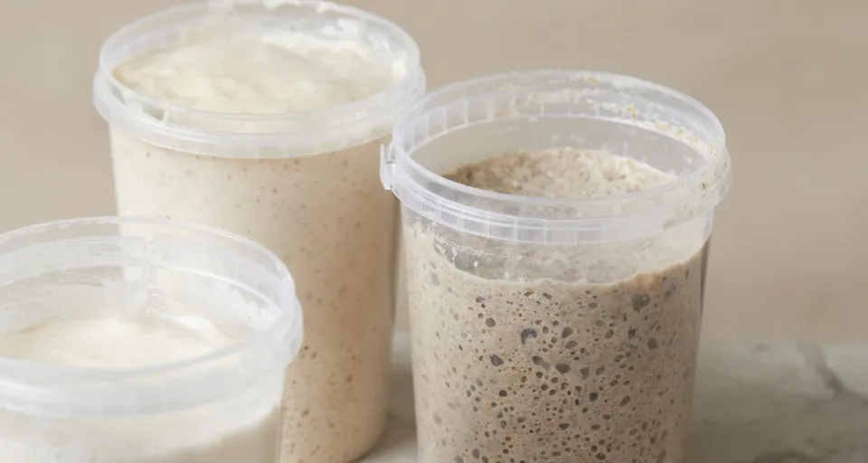 Kom vandet i en skål og rør gær, surdej, salt og fuldkornsmel ud i vandet. Sigt hvedemelet i og rør det hele sammen på en røremaskine eller i hånden.