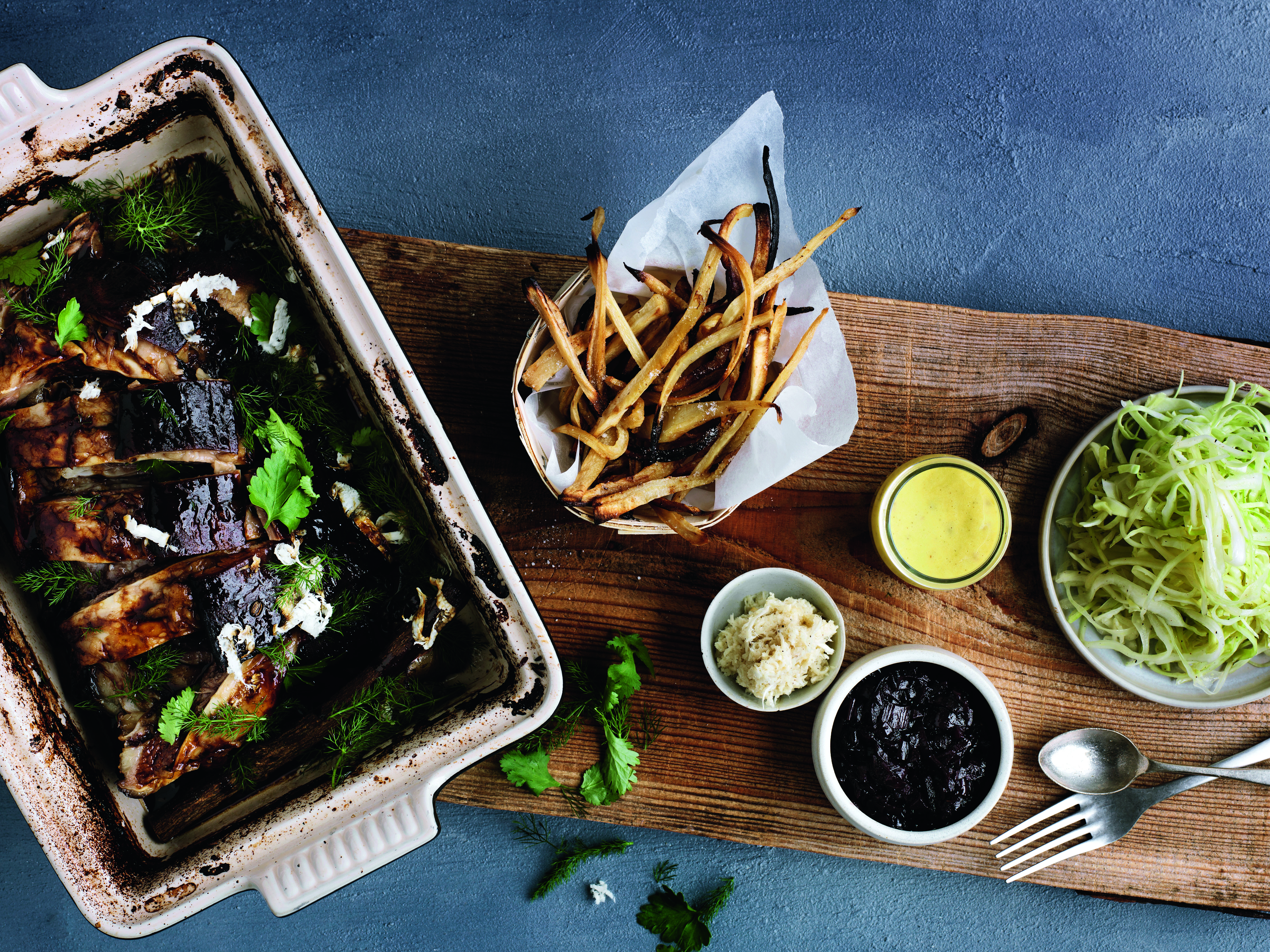 Drys oksetværrebet med salt, dæk det til, og sæt det i køleskabet natten over.