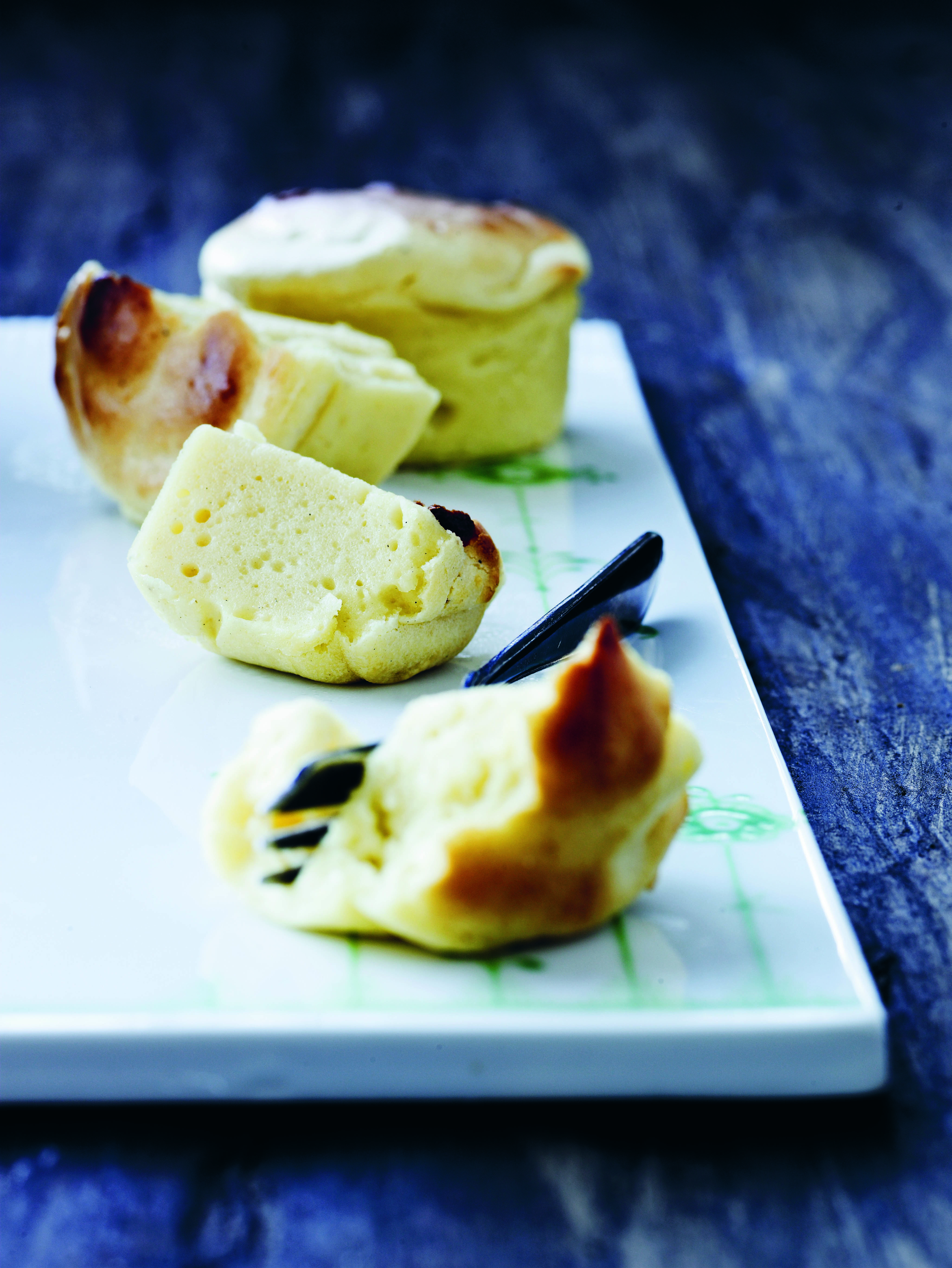 Lad dejen afkøle let, og rør så æggeblommerne i – 1 ad gangen. Pisk til sidst æggehviderne stive, og vend dem i dejen.