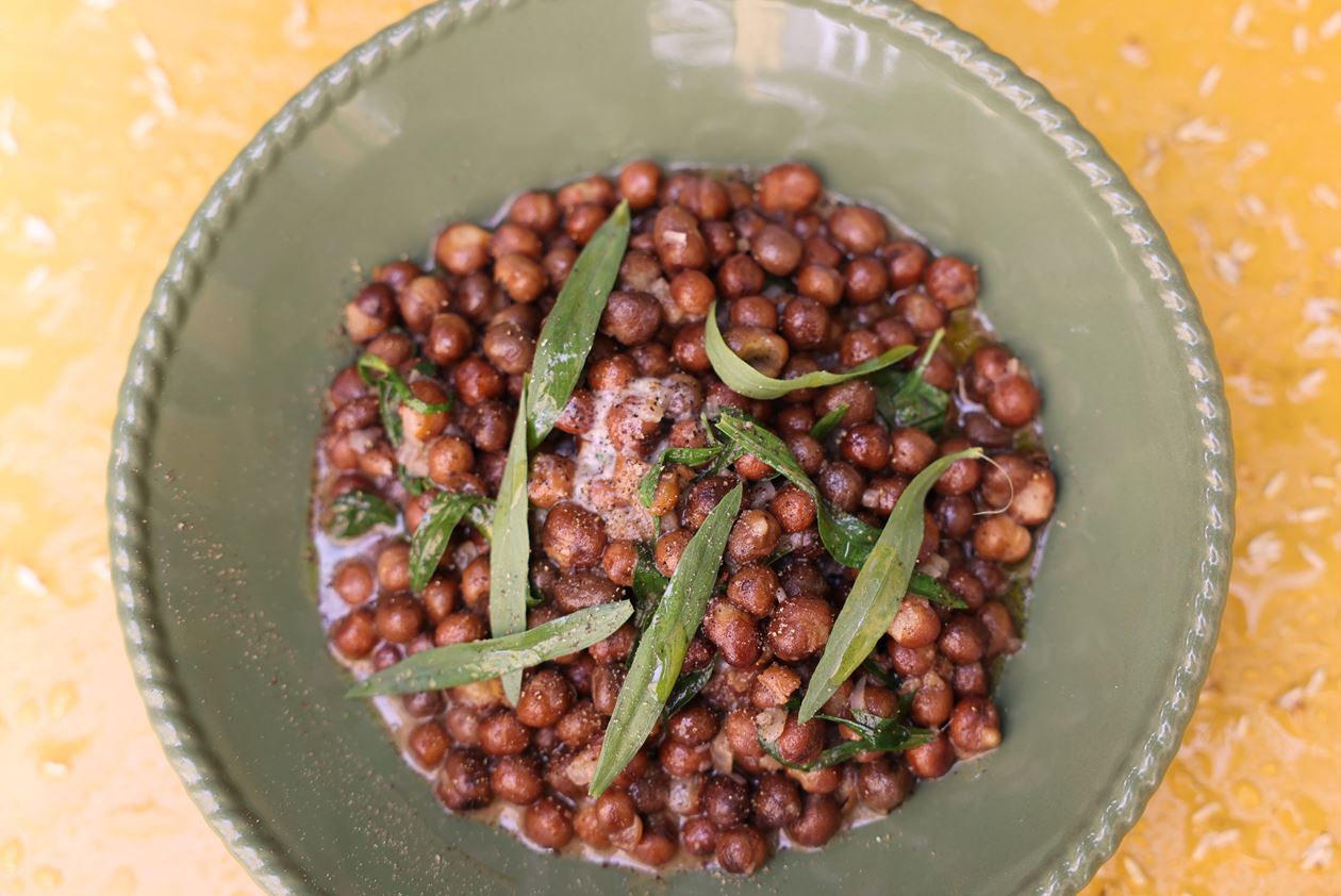 Vend estragonbladene i, og smag til med æblecidereddike, salt og peber.