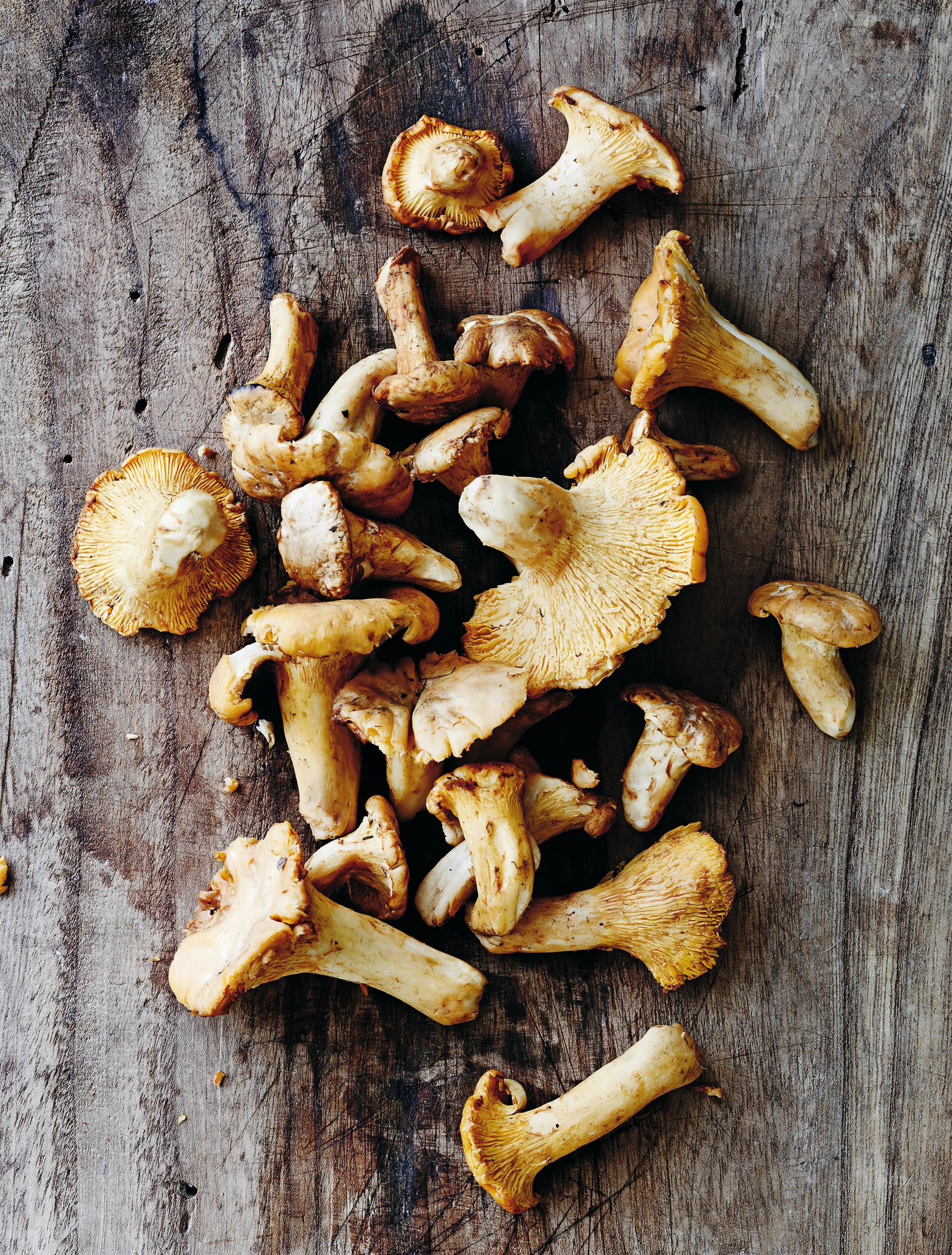 Rens kantarellerne med pensel eller en lille grønsagskniv; hvis de er meget beskidte, kan du vaske dem forsigtigt. Del kantarellerne ud i mindre stykker og lad dem ligge på et stykke køkkenrulle og tørre en smule.