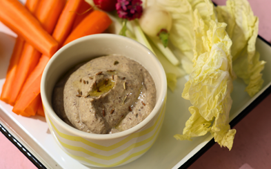 Svampefrikadeller med flækærtehummus