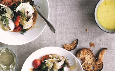 Bagte rødbeder med østersvinaigrette og sprødt hvedebrød