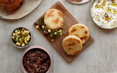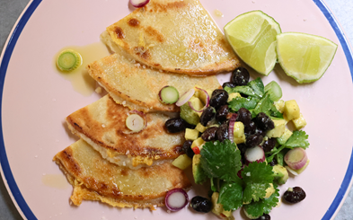 Arepas med sorte bønner, ancho chili og ananassalsa