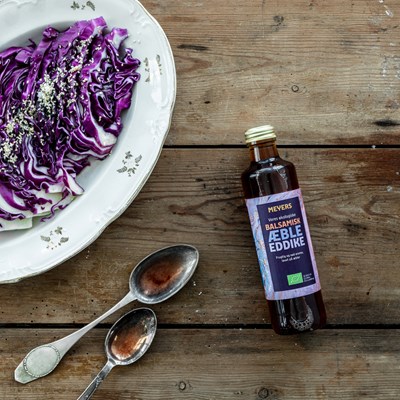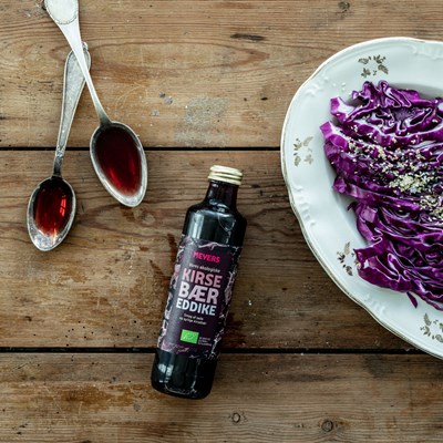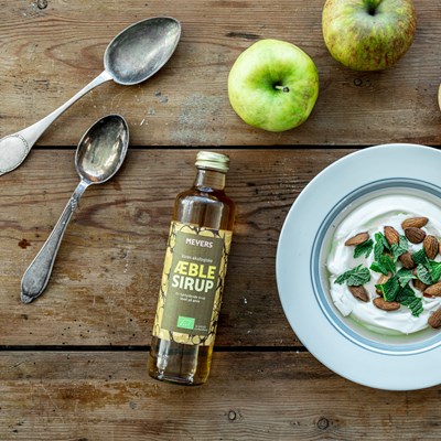 Æblecidereddike*, sukker*, 16% lys sirup*, 16% mørk sirup, 6% æblejuice* (fra koncentrat), aroniajuice*