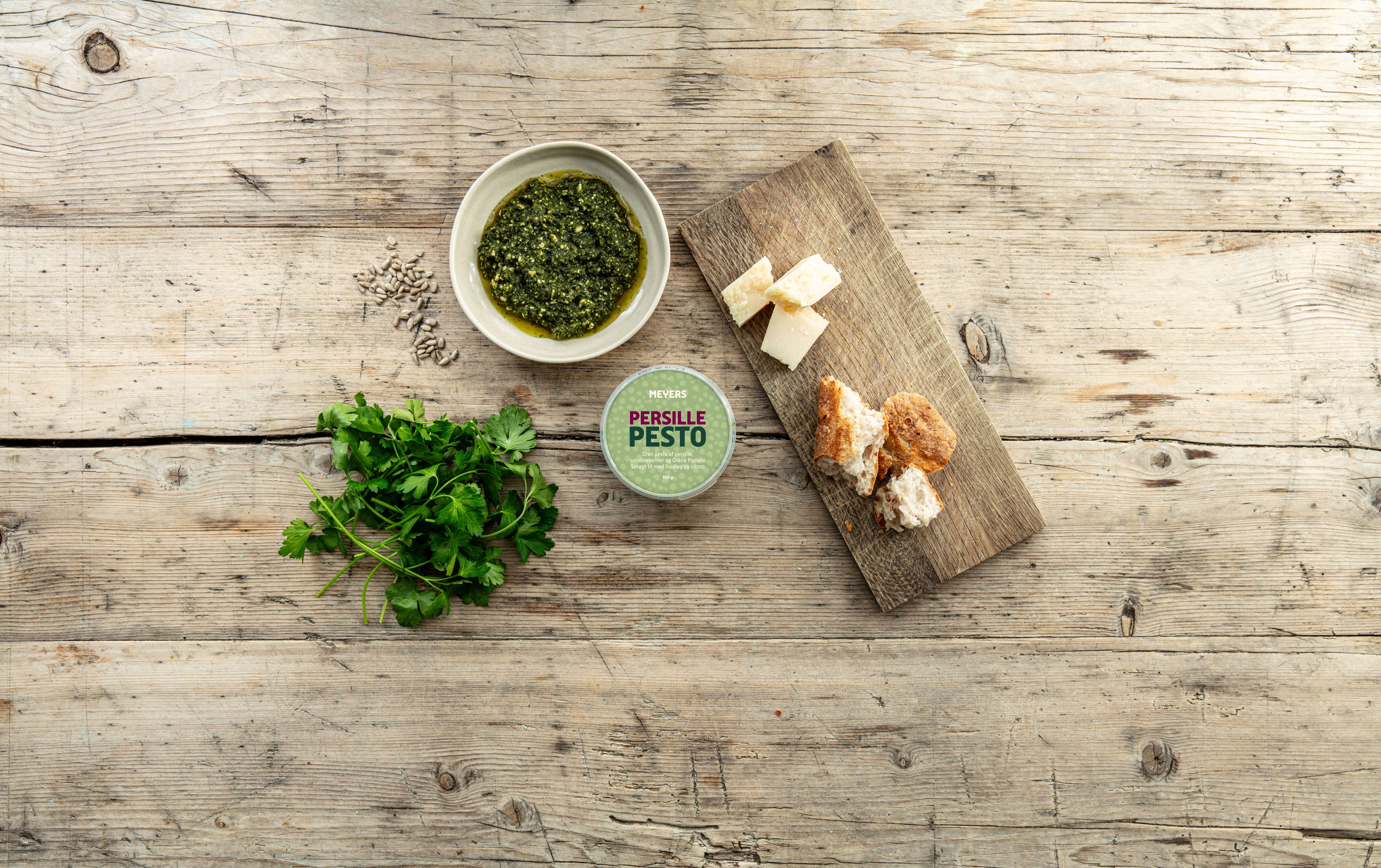 Vores nordiske svar på italienernes elskede pesto. Bredbladet persille hakket med solsikkekerner og tilsmagt med æblecidereddike. Persillen giver en frisk, grøn urtesmag, som spiller glimrende sammen med syren fra æbleeddiken og nøddenoterne fra kernerne. Vidste du at den klassiske italienske pesto, som de fleste af os kender og elsker, er lavet af basilikum, hvidløg, pinjekerner, olivenolie og ost? Vores pesto er på en måde en nordisk hyldest, da vi har skiftet basilikum, pinjekerner og olivenolie ud med persille, solsikkekerner og rapsolie og tilføjet lidt æblecidereddike. Prøv vores persillepesto, som en del af en snackservering, vend den med kogte kartofler, i pastaretter, varme retter, i sandwich, på ristet brød, som dip eller til en omelet.