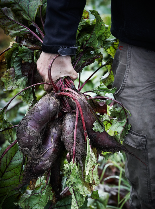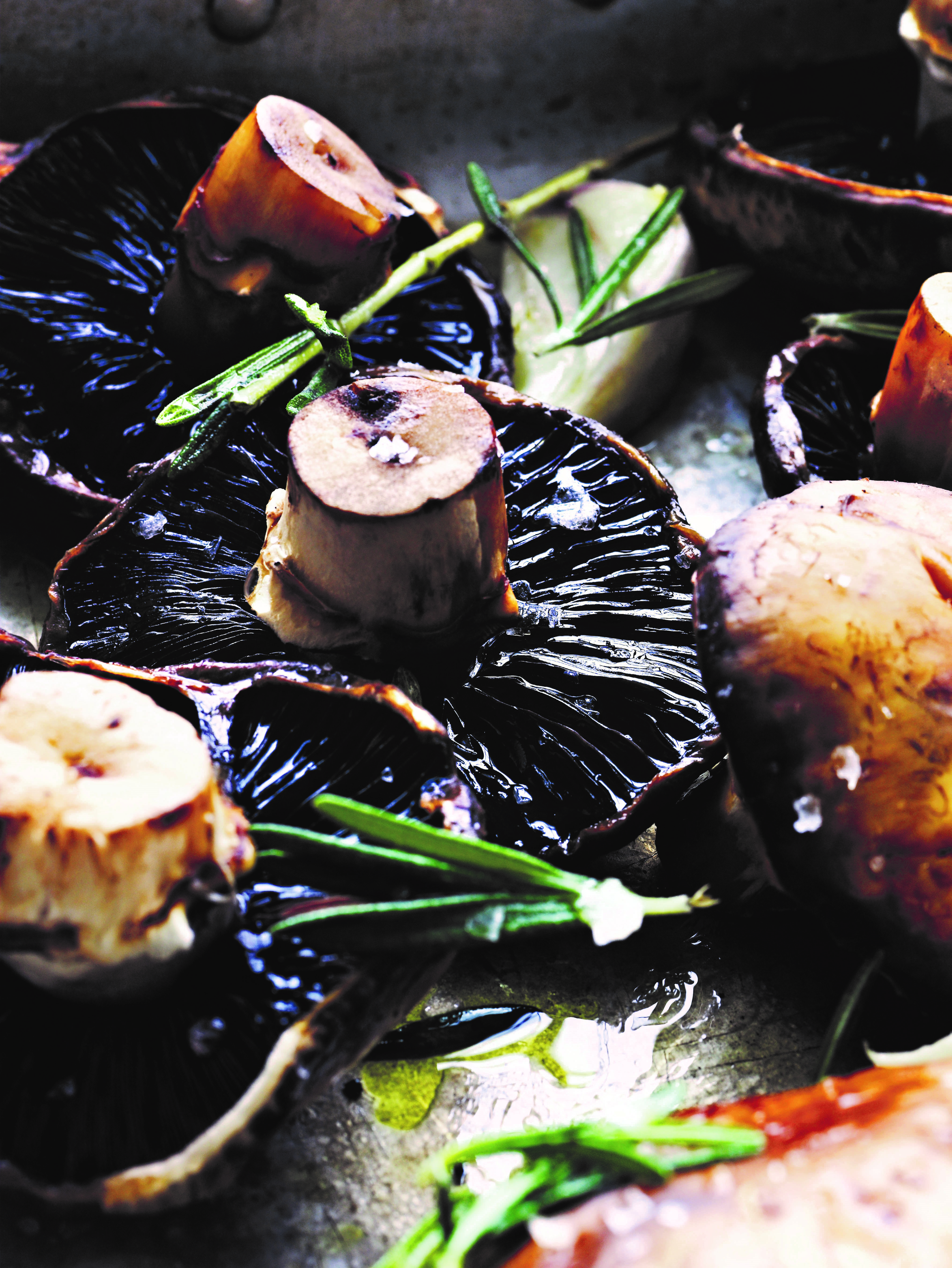 Braiseret selleri med rødkål, kartofler og svampesauce